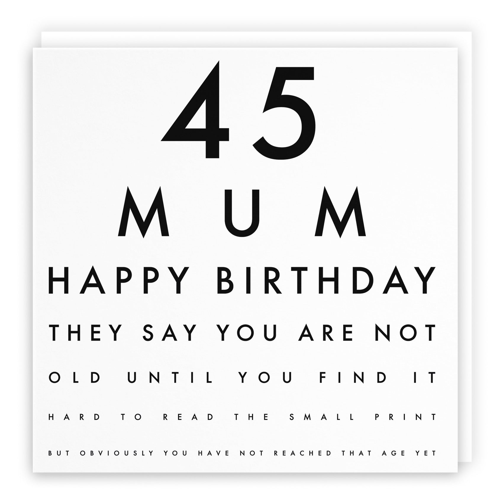 Hunts England - Mum 45th Humorous Birthday Card - 45 Mum - Happy Birthday - They Say You Are Not Old Until You Find It Hard To Read The Small Print... - Letters Collection.