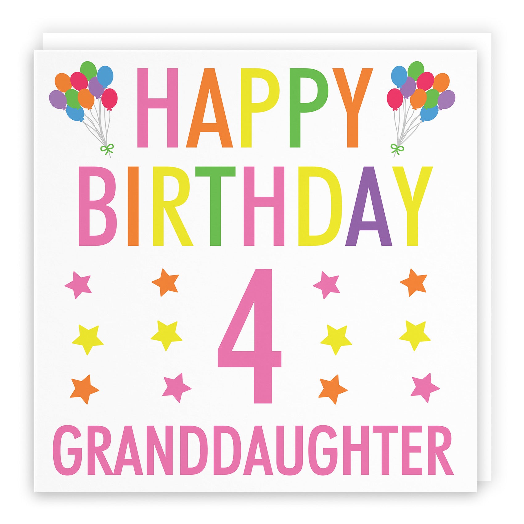 Hunts England - Granddaughter 4th Birthday Card - 'Happy Birthday' - '4 Granddaughter' - Colourful Collection.
