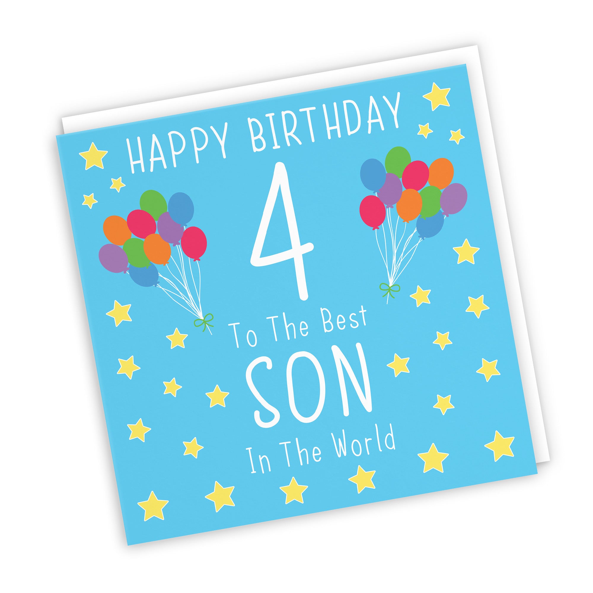 Hunts England - Son 4th Birthday Card - Happy Birthday - 4 - To The Best Son In The World - Iconic Collection.