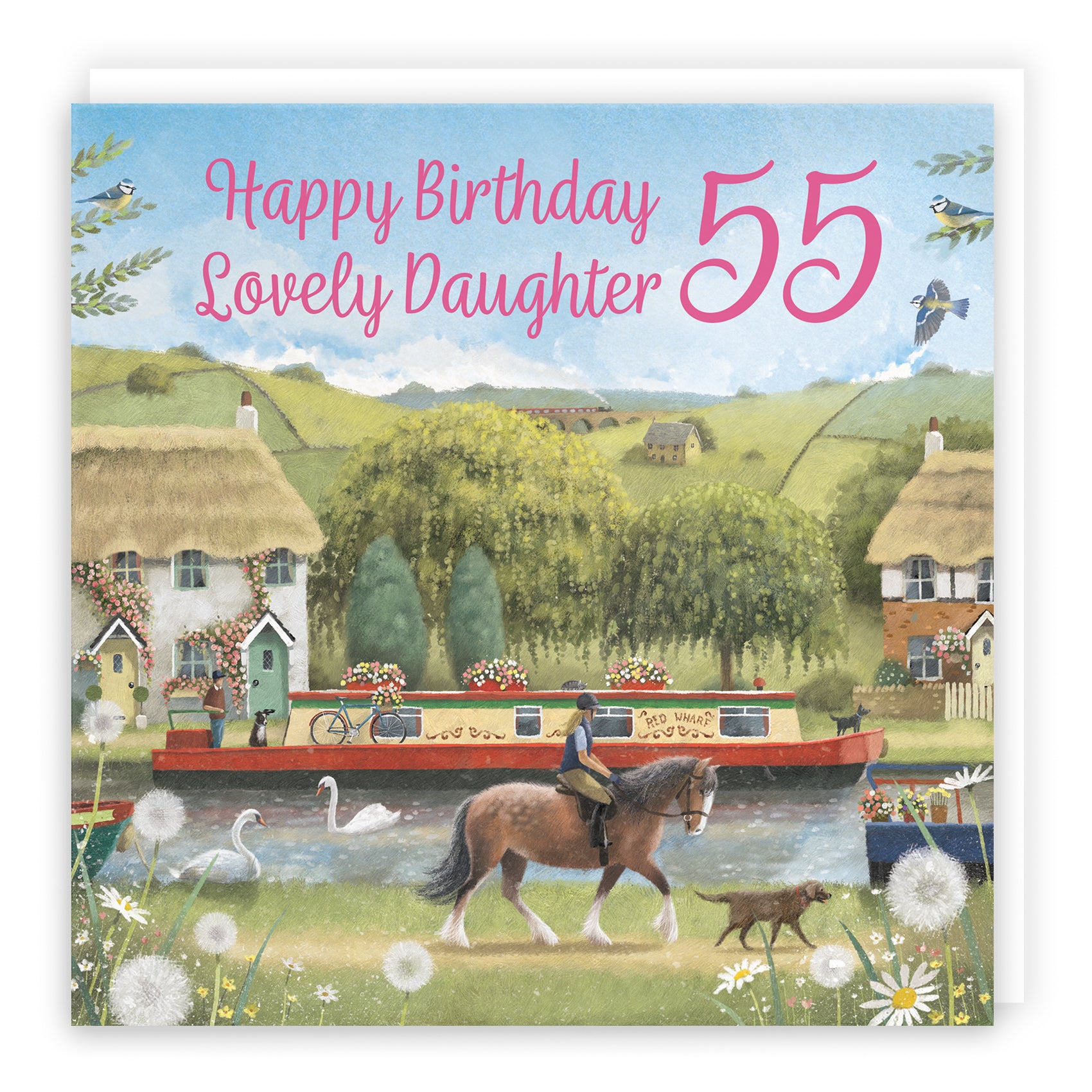 55th Daughter Horse Riding Birthday Card - Canal Narrowboat - Countryside - Age 55 Card For Daughter - Milo's Gallery - Age Fifty Five Birthday Card - Daughter Birthday.