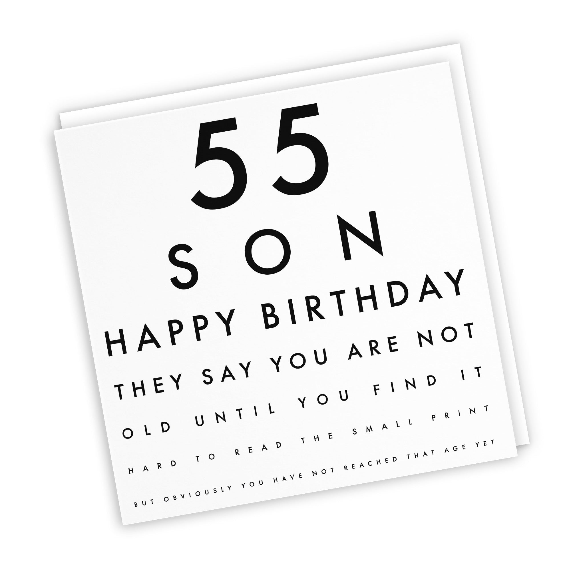 Hunts England - Son 55th Humorous Birthday Card - 55 Son - Happy Birthday - They Say You Are Not Old Until You Find It Hard To Read The Small Print... - Letters Collection.