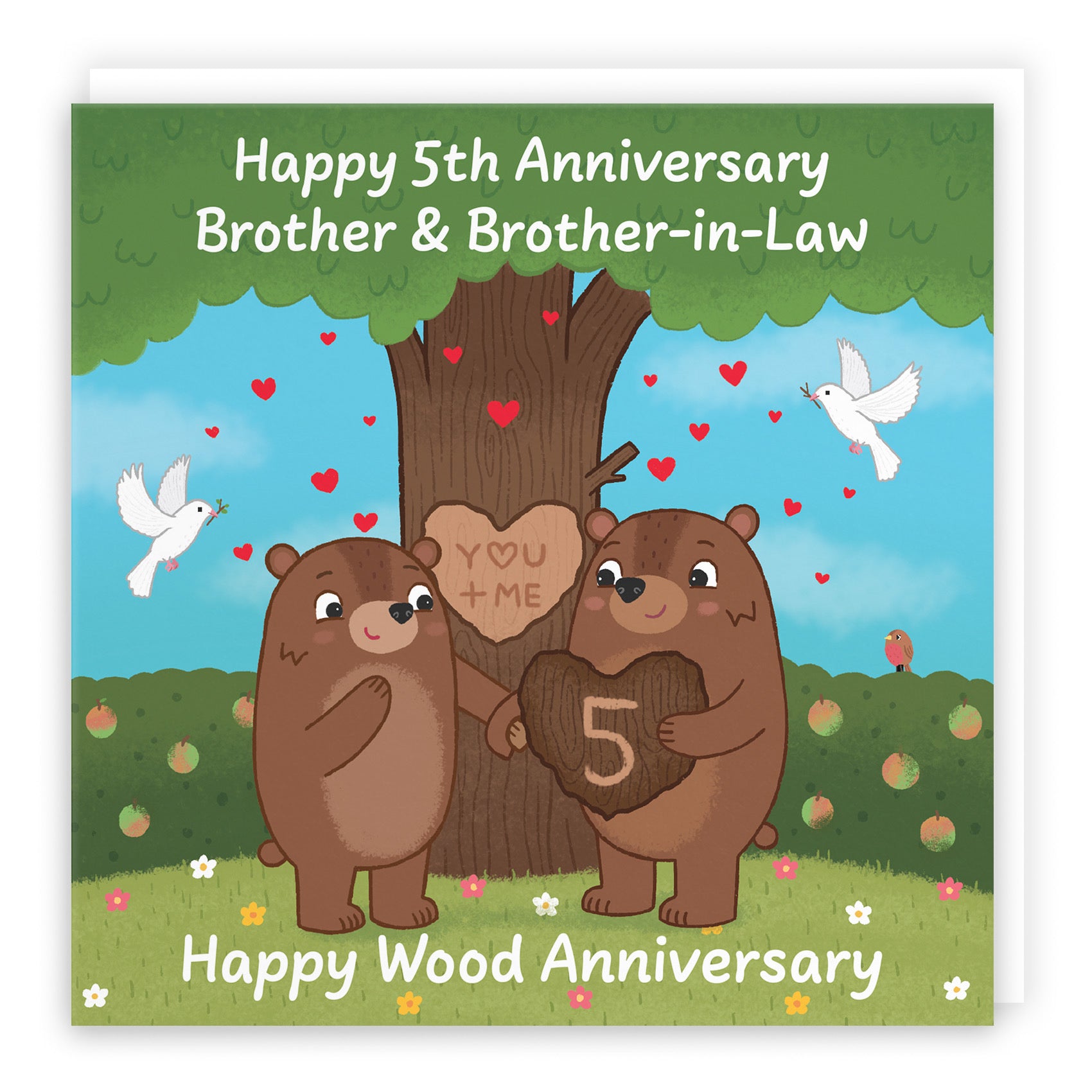 Hunts England - Same Sex Brother And Brother In Law 5th Anniversary Card - Wood Anniversary - Fifth Anniversary - 5 Years - Cute Fun Bears Card For Brother & Brother-in-Law - Love Story Collection.