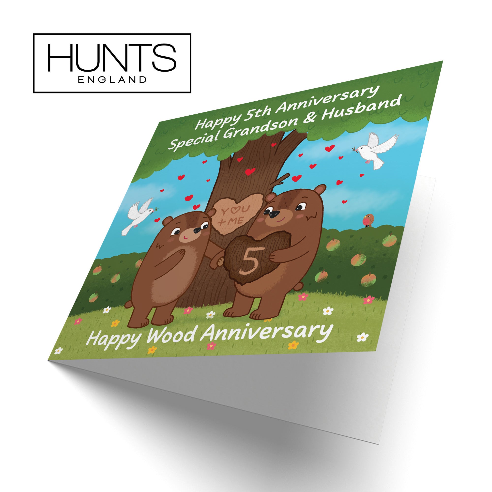 Hunts England - Same Sex Grandson And Husband 5th Anniversary Card - Wood Anniversary - Fifth Anniversary - 5 Years - Cute Fun Bears Card - Love Story Collection.