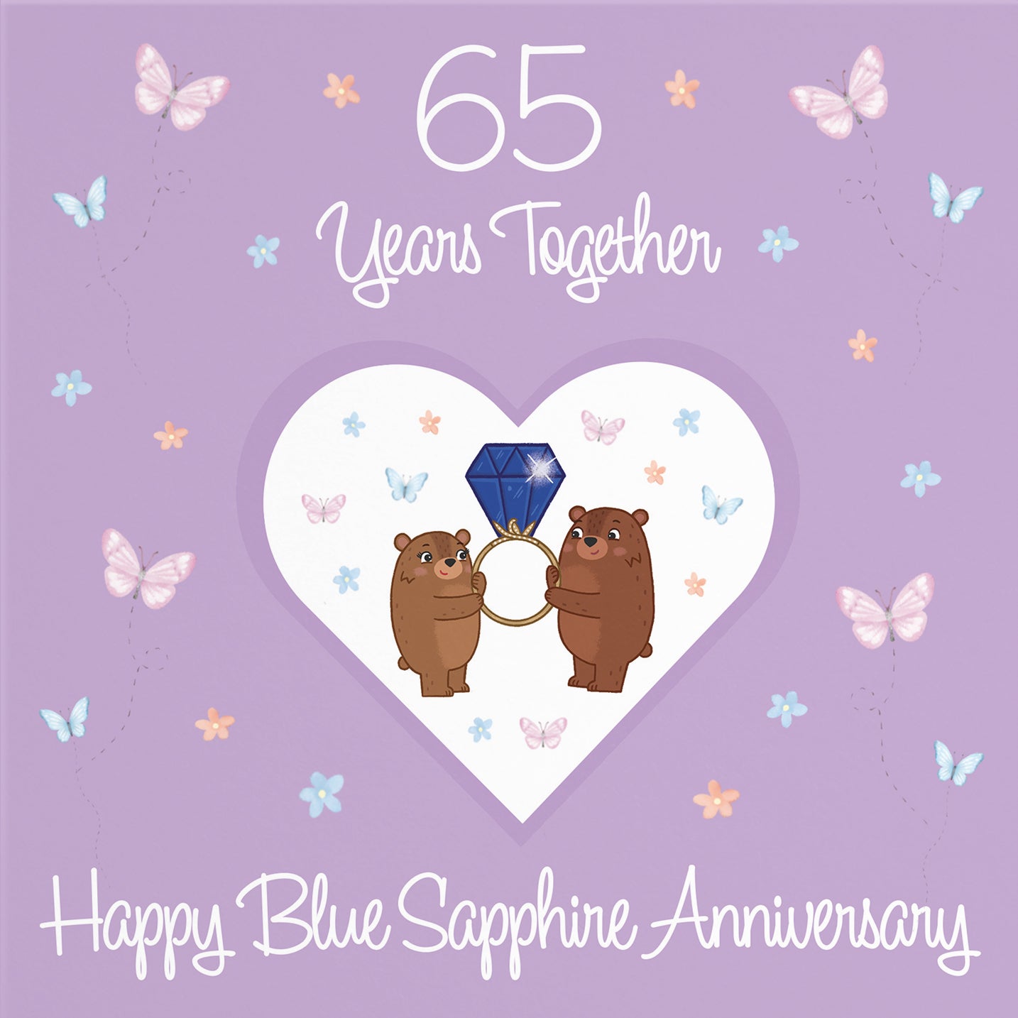 Hunts England - 65th Anniversary Card For Him Or Her - 65 Years - Blue Sapphire Anniversary - Romantic Meadows Collection - Anniversary Card For Couples, Boyfriend, Girlfriend, Husband, Wife, etc.