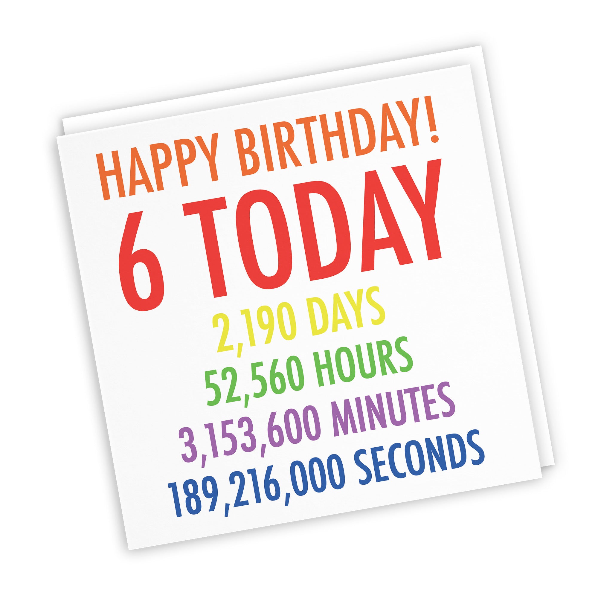 Hunts England - Funny 6th Birthday Card - Colourful - Happy Birthday - 6 Today - Numbers Collection - For Son, Daughter, Brother, Sister, Friend, Cousin, etc..
