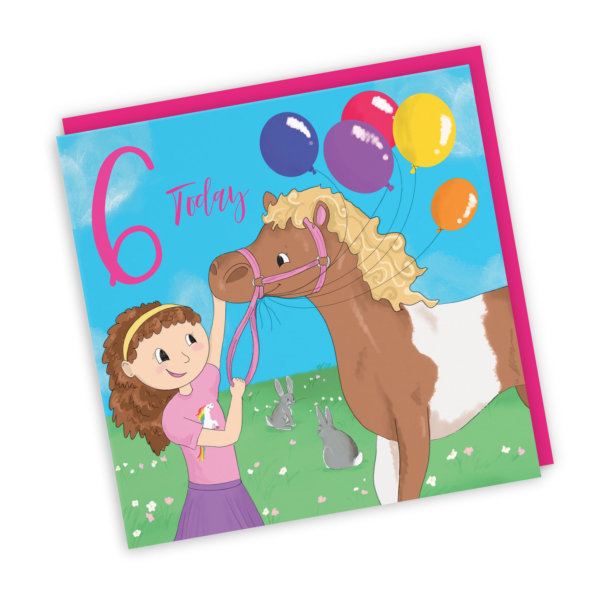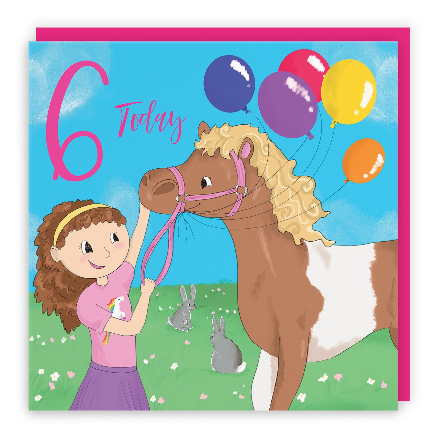 Hunts England - Girls 6th Birthday Pony Horse Children's Card - 6 Today - Age 6 Birthday Card - Happy Times Collection.