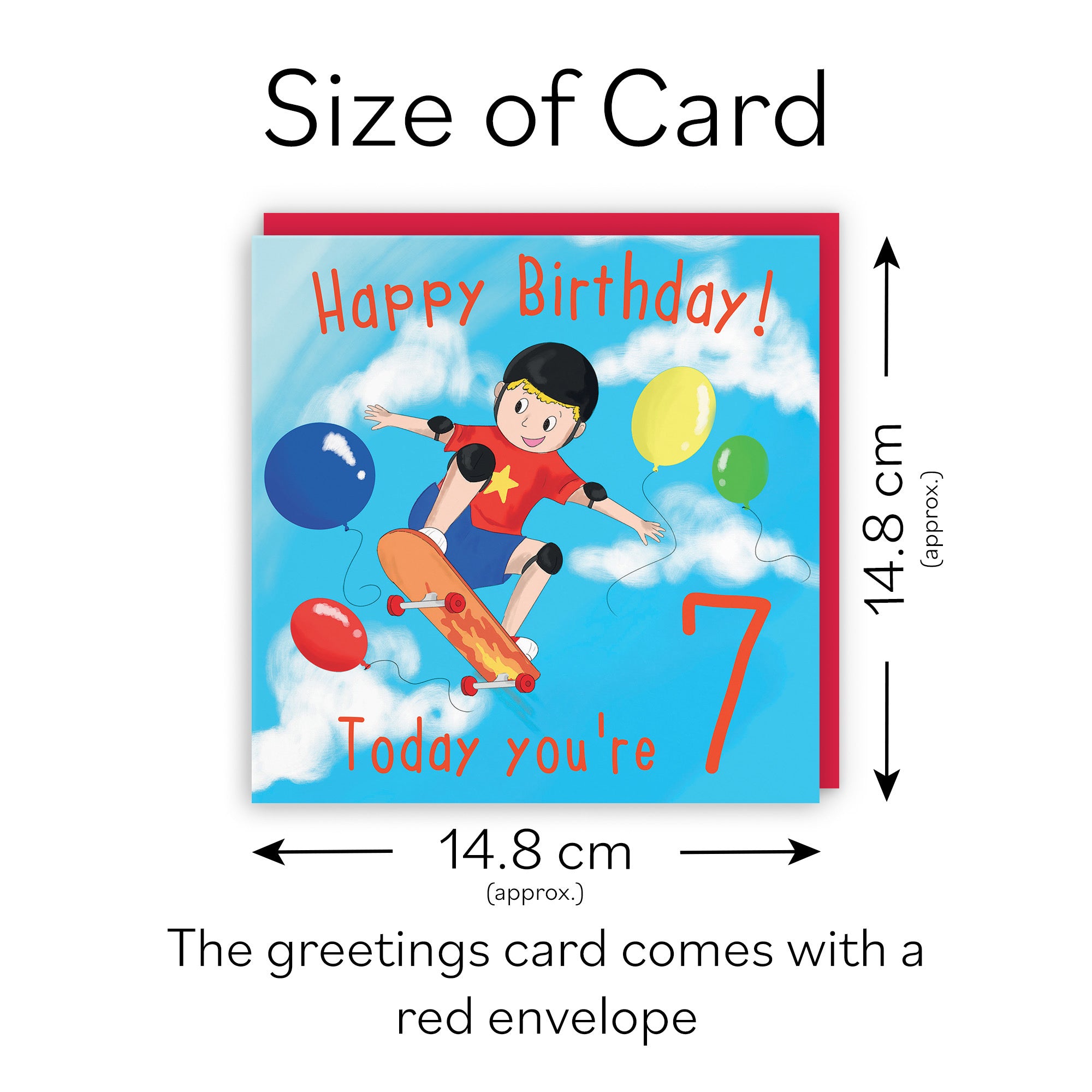 Hunts England - Boys 7th Birthday Skateboard Children's Birthday Card - Today You're 7 - Age 7 Card - Adventurers Collection.