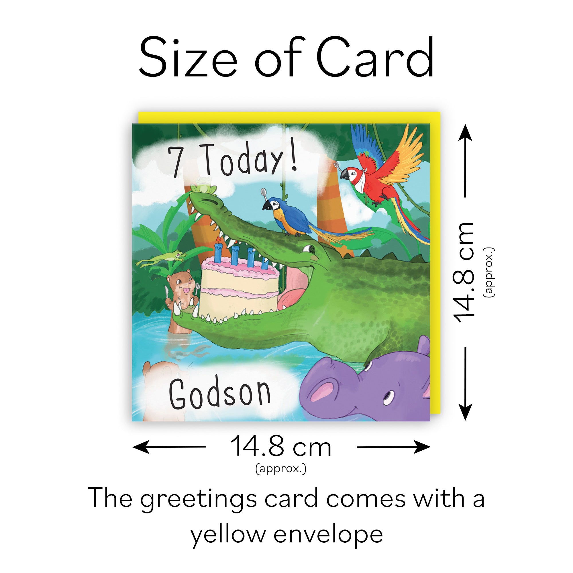 Hunts England - Godson 7th Crocodile Birthday Card - 7 Today! - Godson - Funny Crocodile Eating Cake - Kids Birthday Card - Jungle Collection.