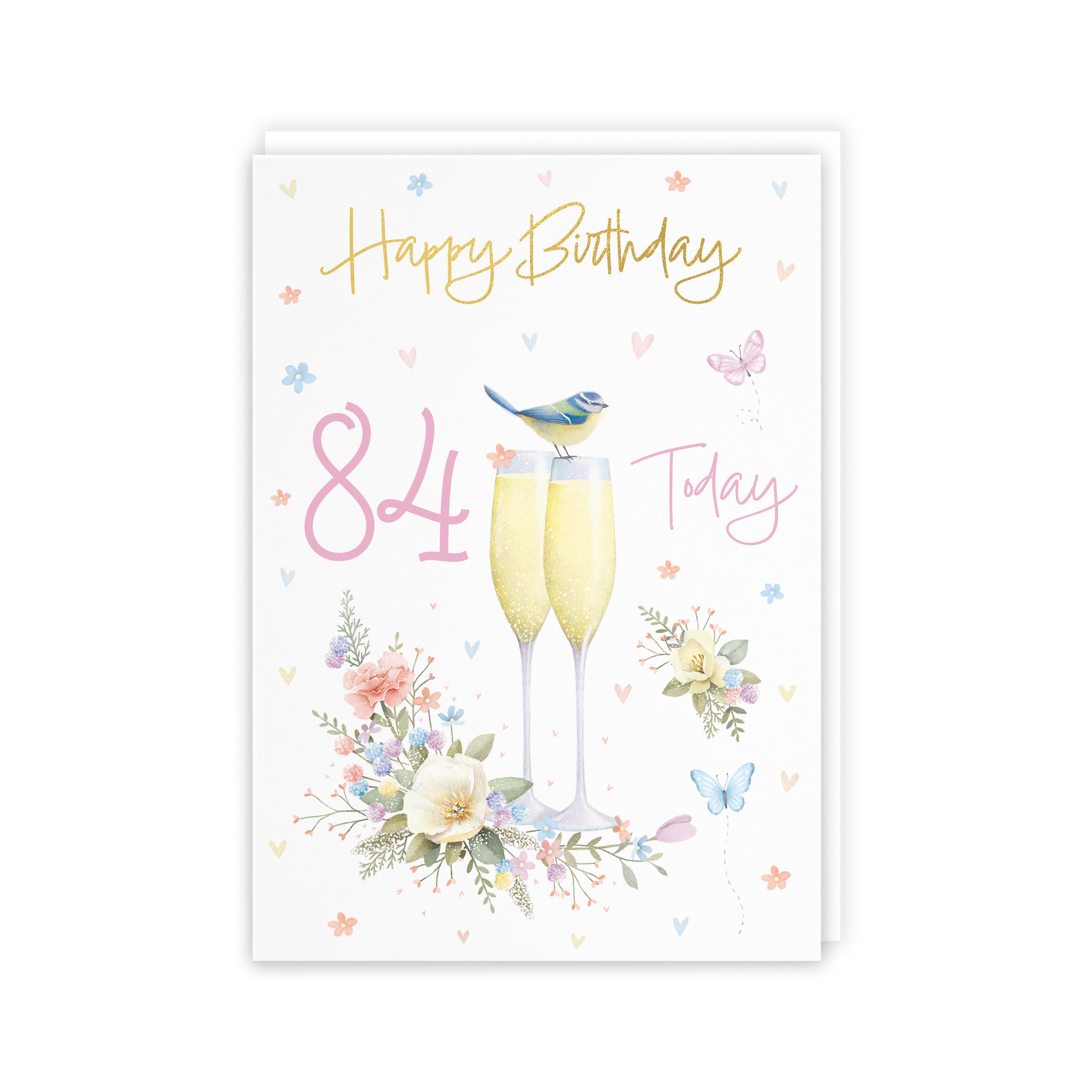 Hunts England - Champagne Flutes Pretty 84th Birthday Card - Gold Foil - Milo's Gallery - Age 84 Female Flowers Birthday Card - Birthday Card For 84 Year Old - Age Eighty Four - For Her - A5 Size.