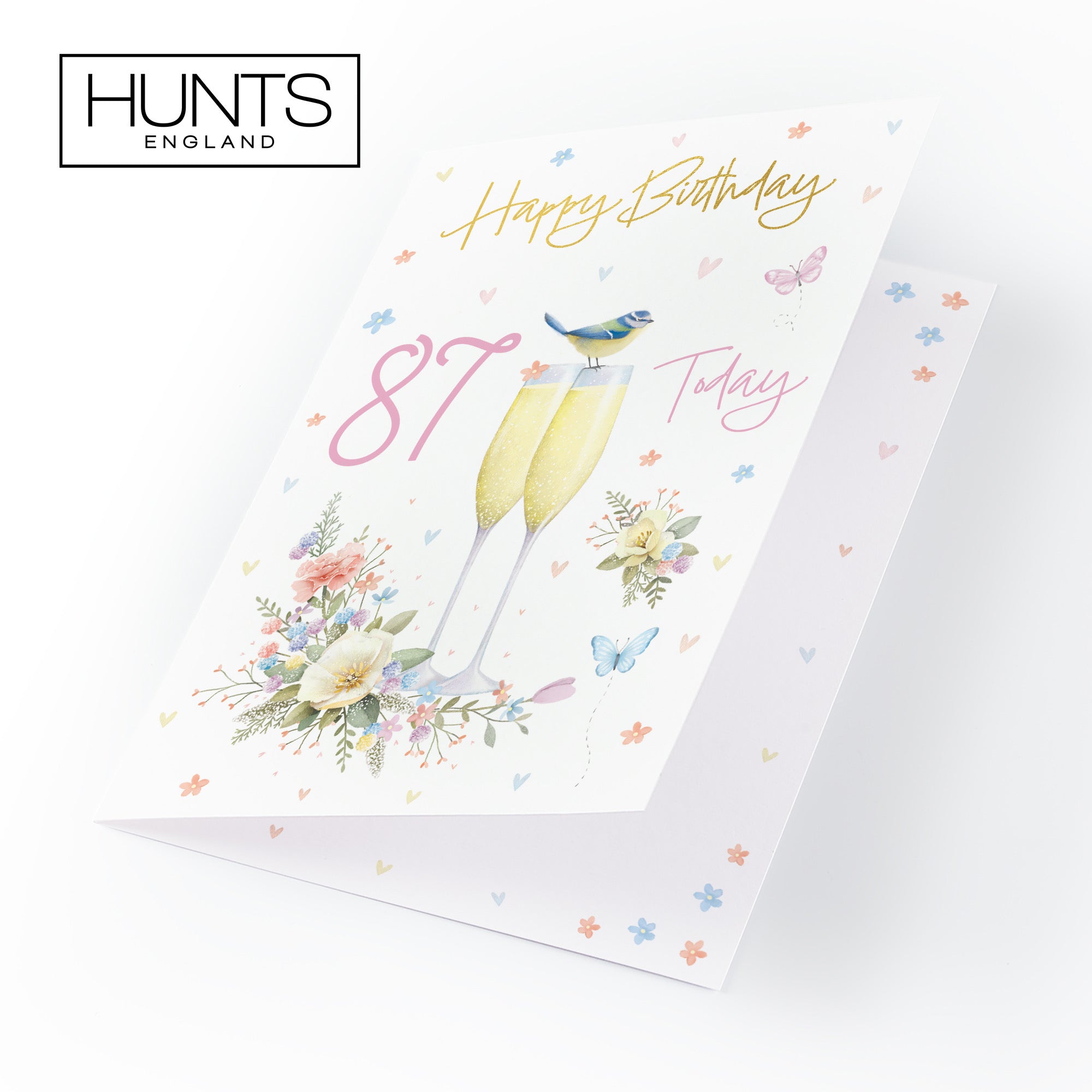 Hunts England - Champagne Flutes Pretty 87th Birthday Card - Gold Foil - Milo's Gallery - Age 87 Female Flowers Birthday Card - Birthday Card For 87 Year Old - Age Eighty Seven - A5 Size.