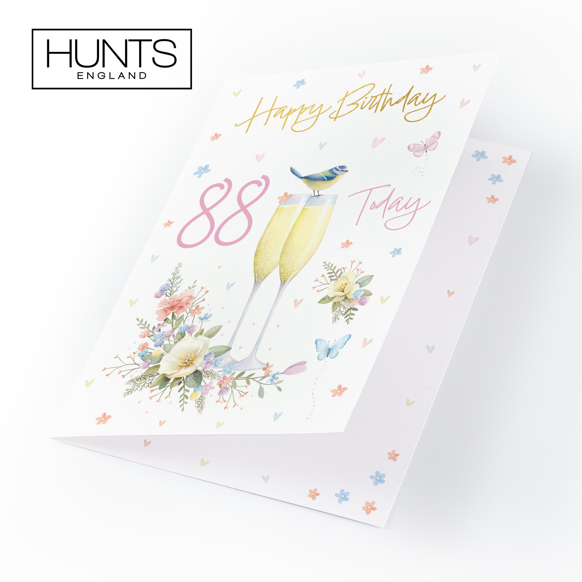 Hunts England - Champagne Flutes Pretty 88th Birthday Card - Gold Foil - Milo's Gallery - Age 88 Female Flowers Birthday Card - Birthday Card For 88 Year Old - Age Eighty Eight - A5 Size.
