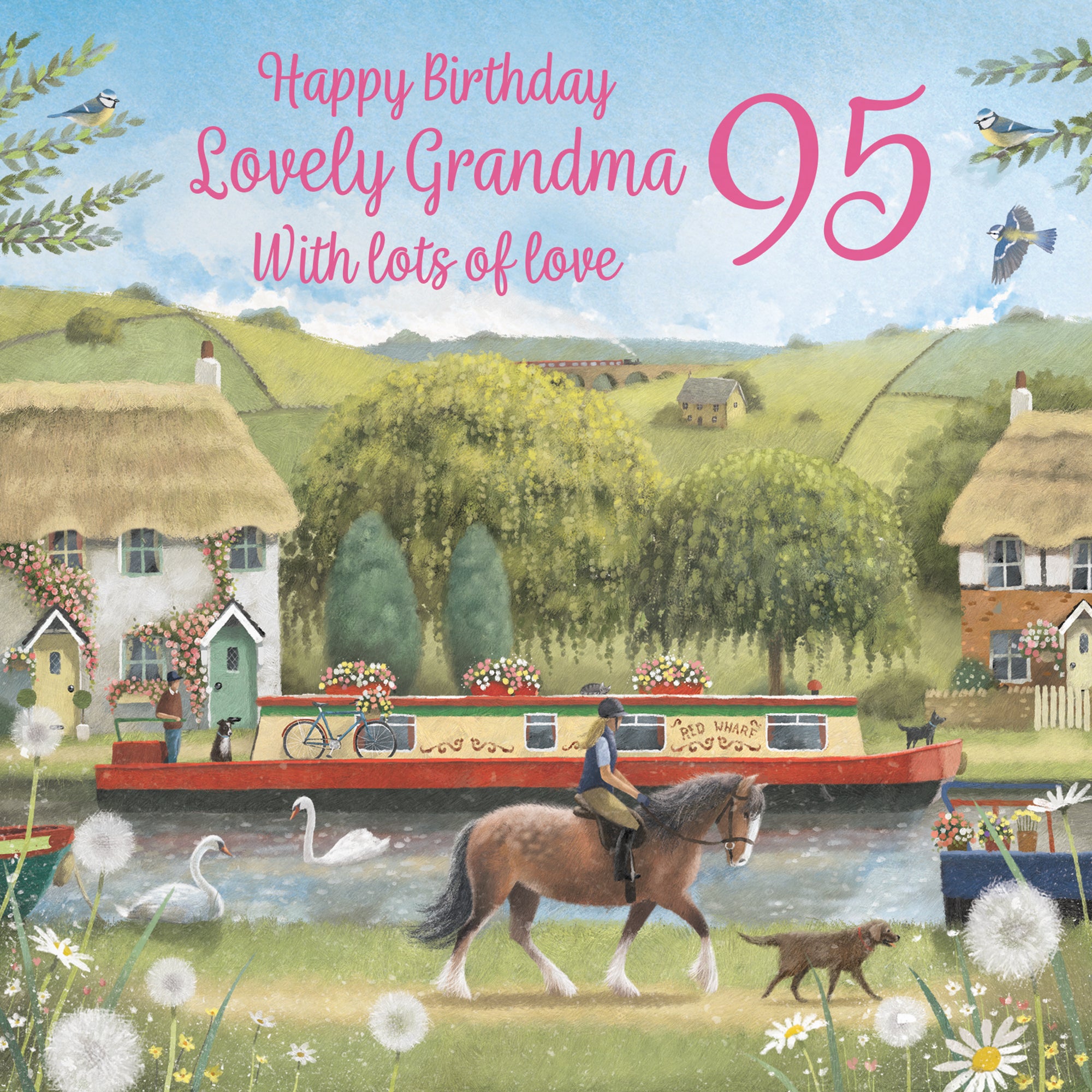 95th Grandma Horse Riding Birthday Card - Canal Narrowboat - Countryside - Age 95 Card For Grandma - Milo's Gallery - Age Ninety Five Birthday Card - Grandma Birthday.
