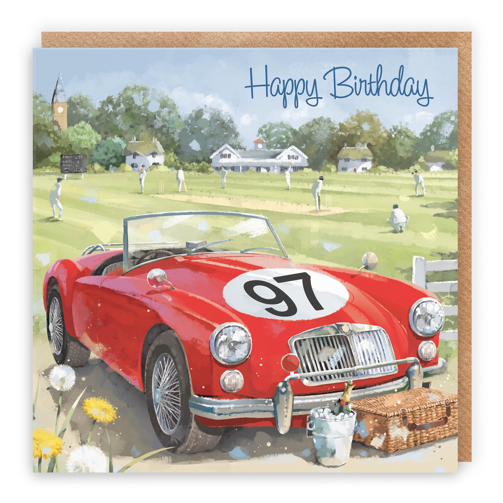 Hunts England - Classic Sports Car 97th Birthday Card For Him - Happy Birthday - 97 - Age 97 Male Artistic Card - Milo's Gallery Collection.