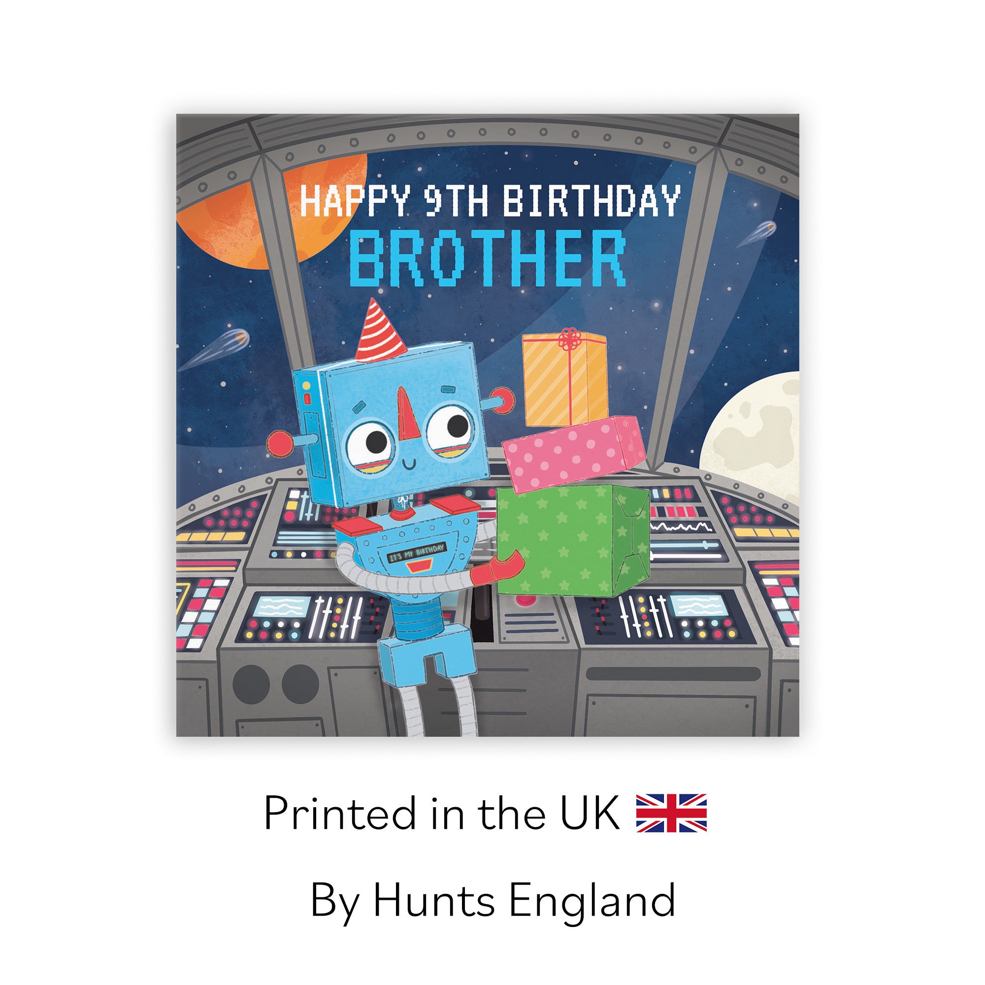 Hunts England - Brother 9th Space Robot Birthday Card - Happy 9th Birthday - Brother - Robot On A Spaceship - Children's / Kids Card - Imagination Collection.