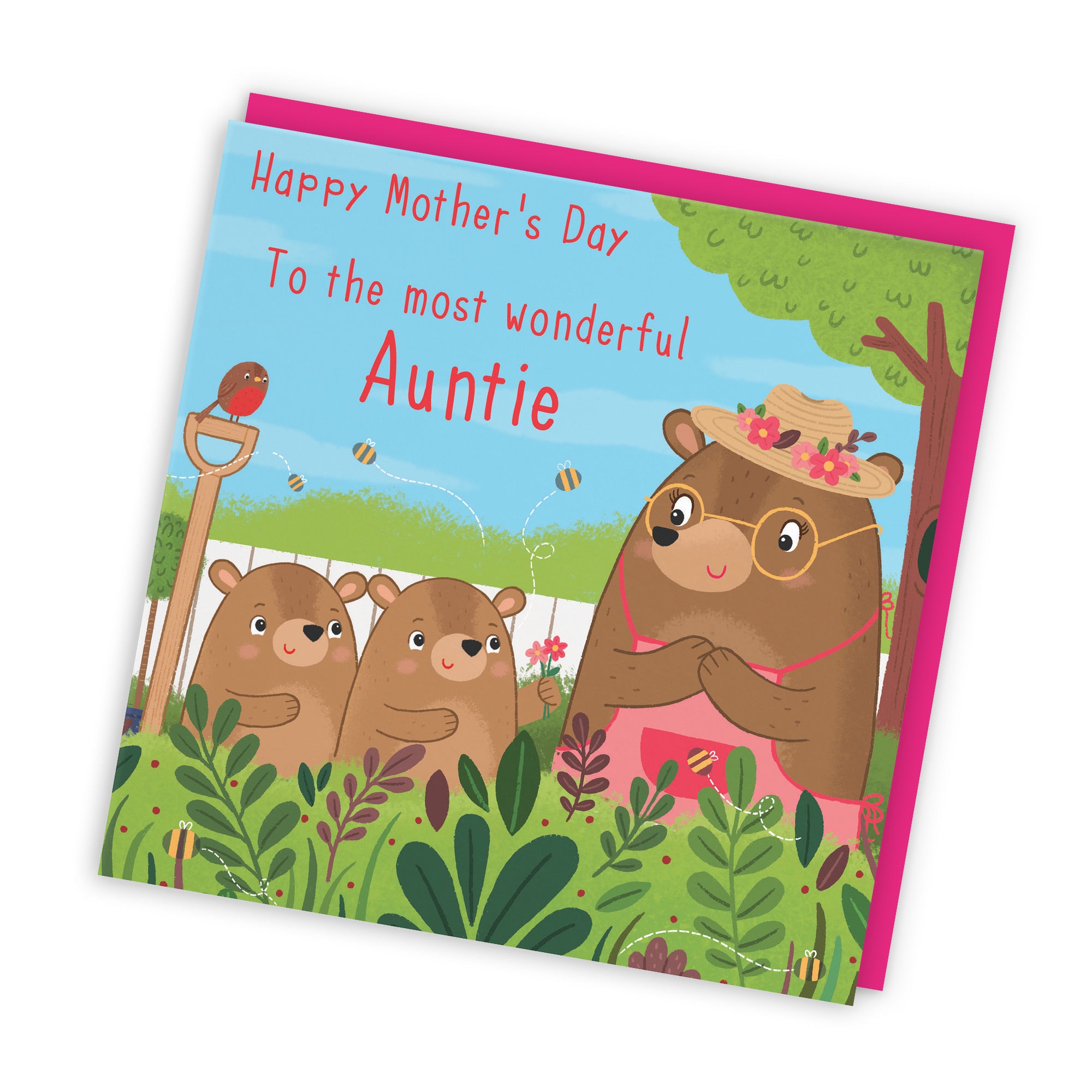 Hunts England - Auntie Mother's Day Card From Two Children - Cute Gardening Bears - Happy Mother's Day - To The Most Wonderful Auntie - Cute Bears Collection.