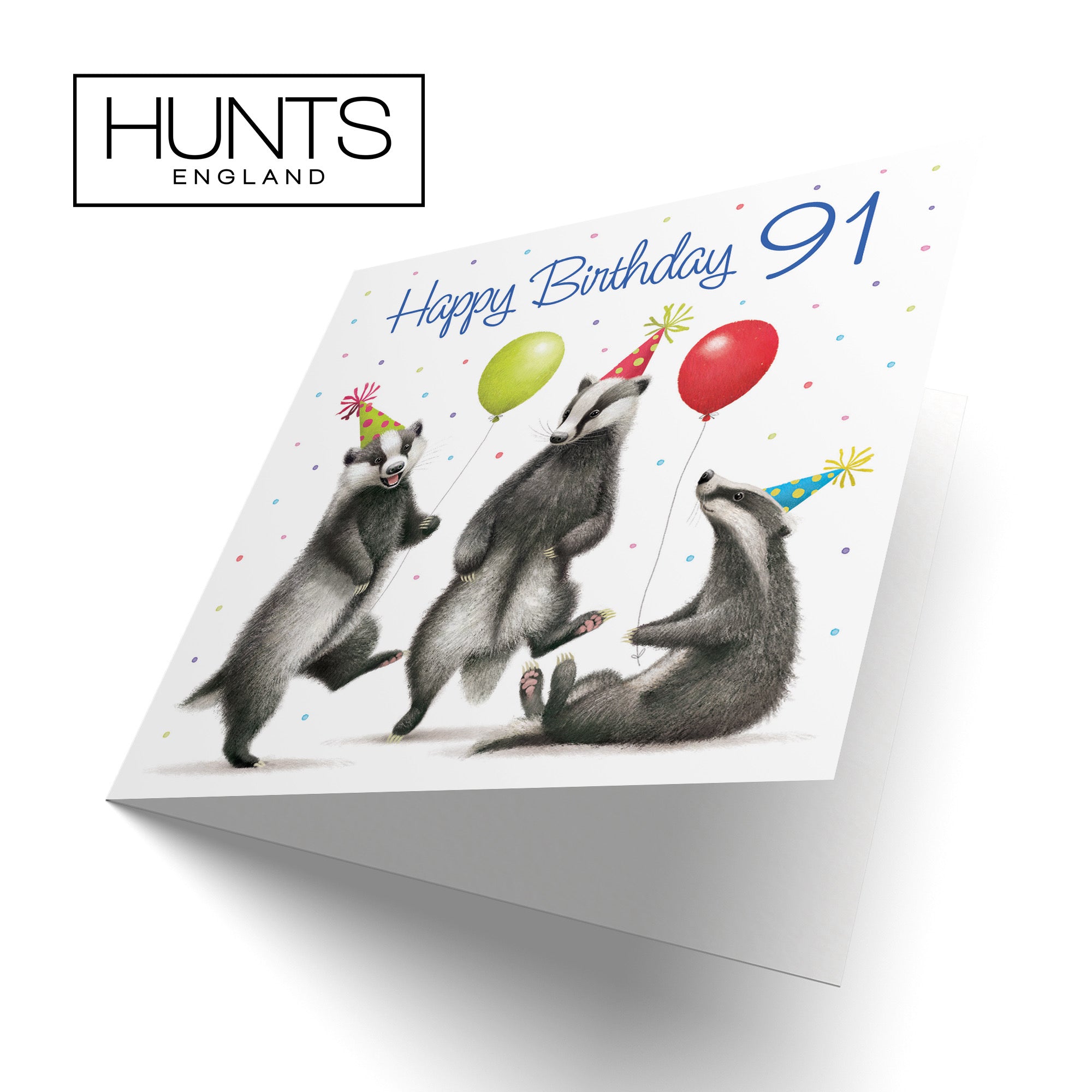 Hunts England - Badgers Funny 91st Birthday Card - Milo's Gallery - Age 91 Wildlife Birthday Card - Birthday Card For 91 Year Old Animal Fan - Age Ninety One - For Him, Her.