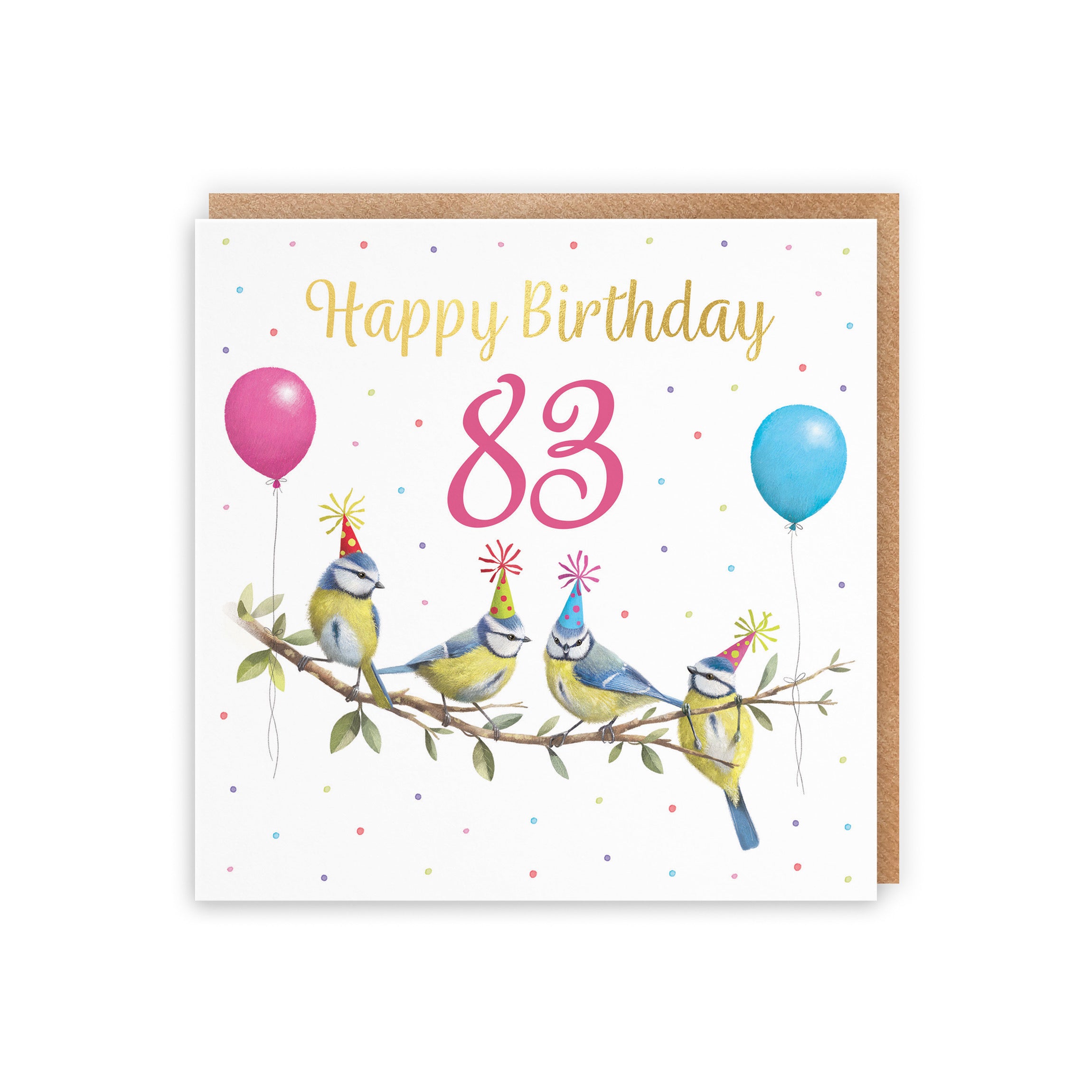 Hunts England - Blue Tits Funny 83rd Birthday Card - Gold Foil - Milo's Gallery - Age 83 Birds Female Birthday Card - Birthday Card For 83 Year Old Animal Fan - Age Eighty Three - For Her.
