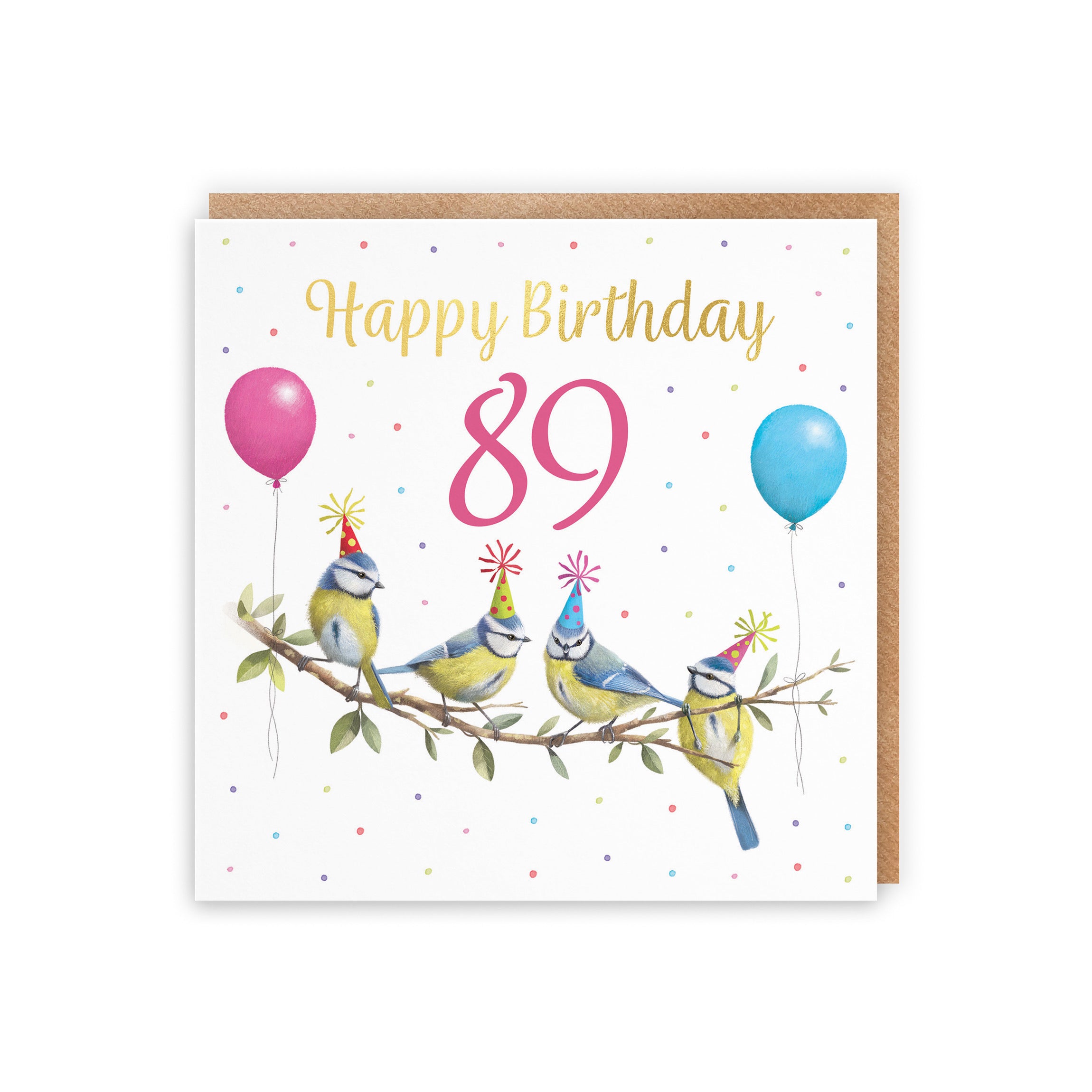 Hunts England - Blue Tits Funny 89th Birthday Card - Gold Foil - Milo's Gallery - Age 89 Birds Female Birthday Card - Birthday Card For 89 Year Old Animal Fan - Age Eighty Nine - For Her.