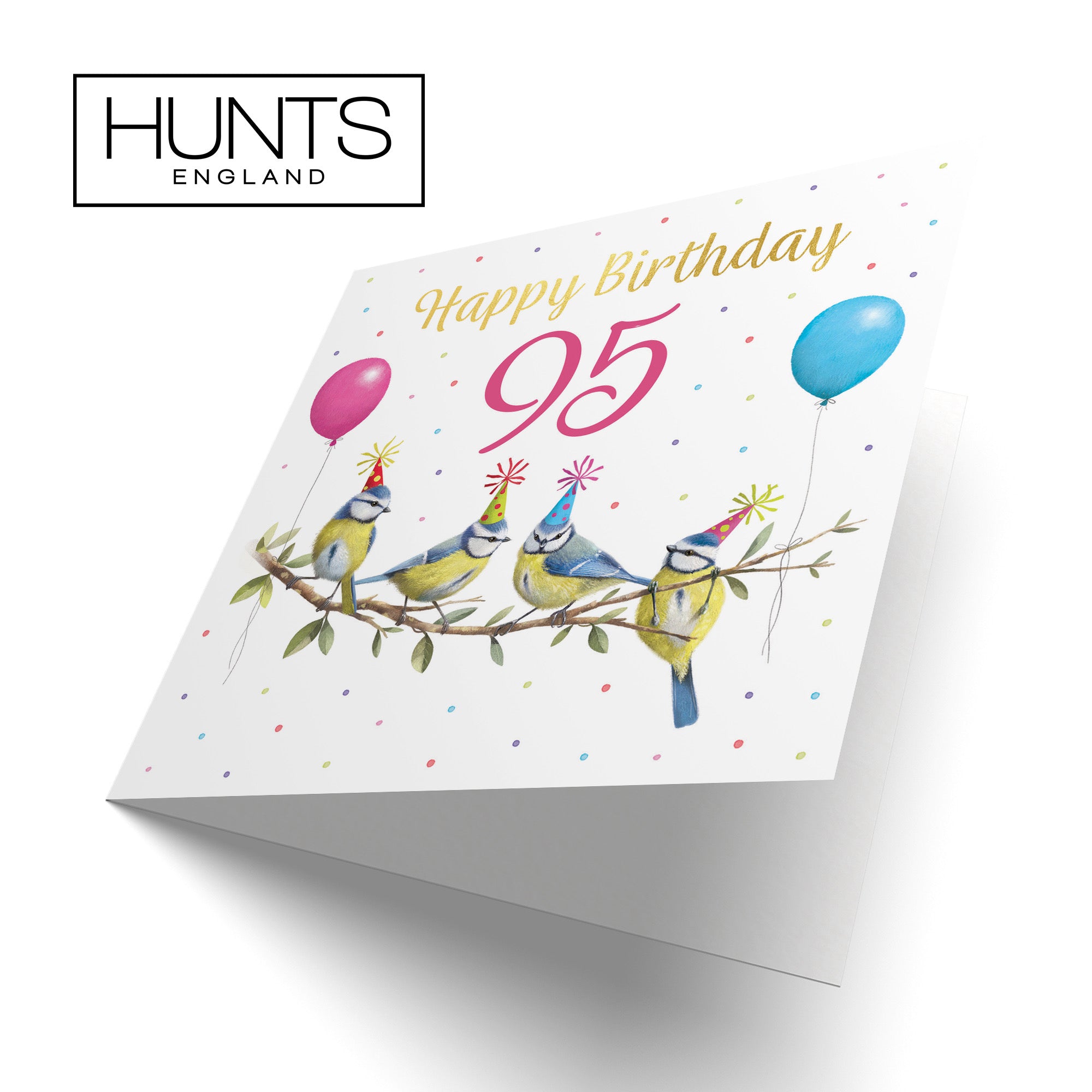 Hunts England - Blue Tits Funny 95th Birthday Card - Gold Foil - Milo's Gallery - Age 95 Birds Female Birthday Card - Birthday Card For 95 Year Old Animal Fan - Age Ninety Five - For Her.
