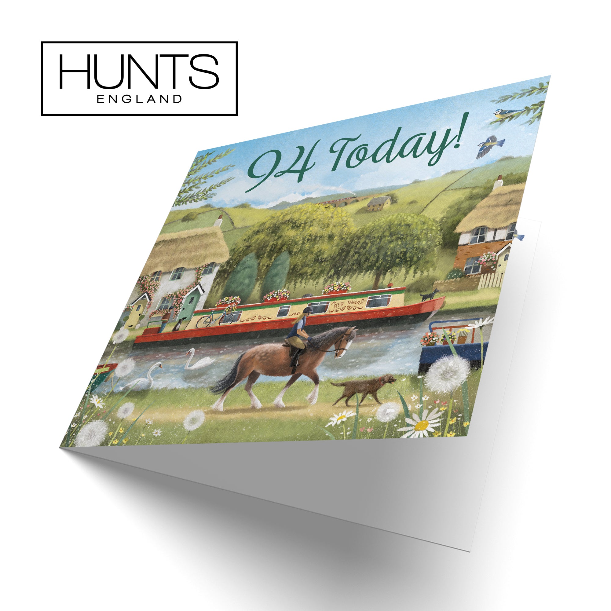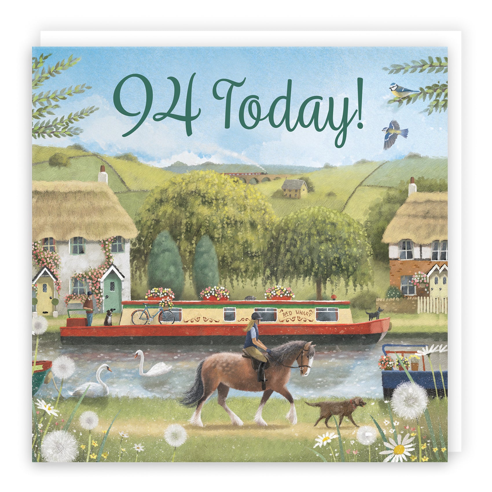 Canal Narrowboat 94th Birthday Card For Him / Her - Horse Riding - Countryside - Milo's Gallery - Age Ninety Four Birthday Card - 94th Birthday Card - 94 Year Old Birthday Card.