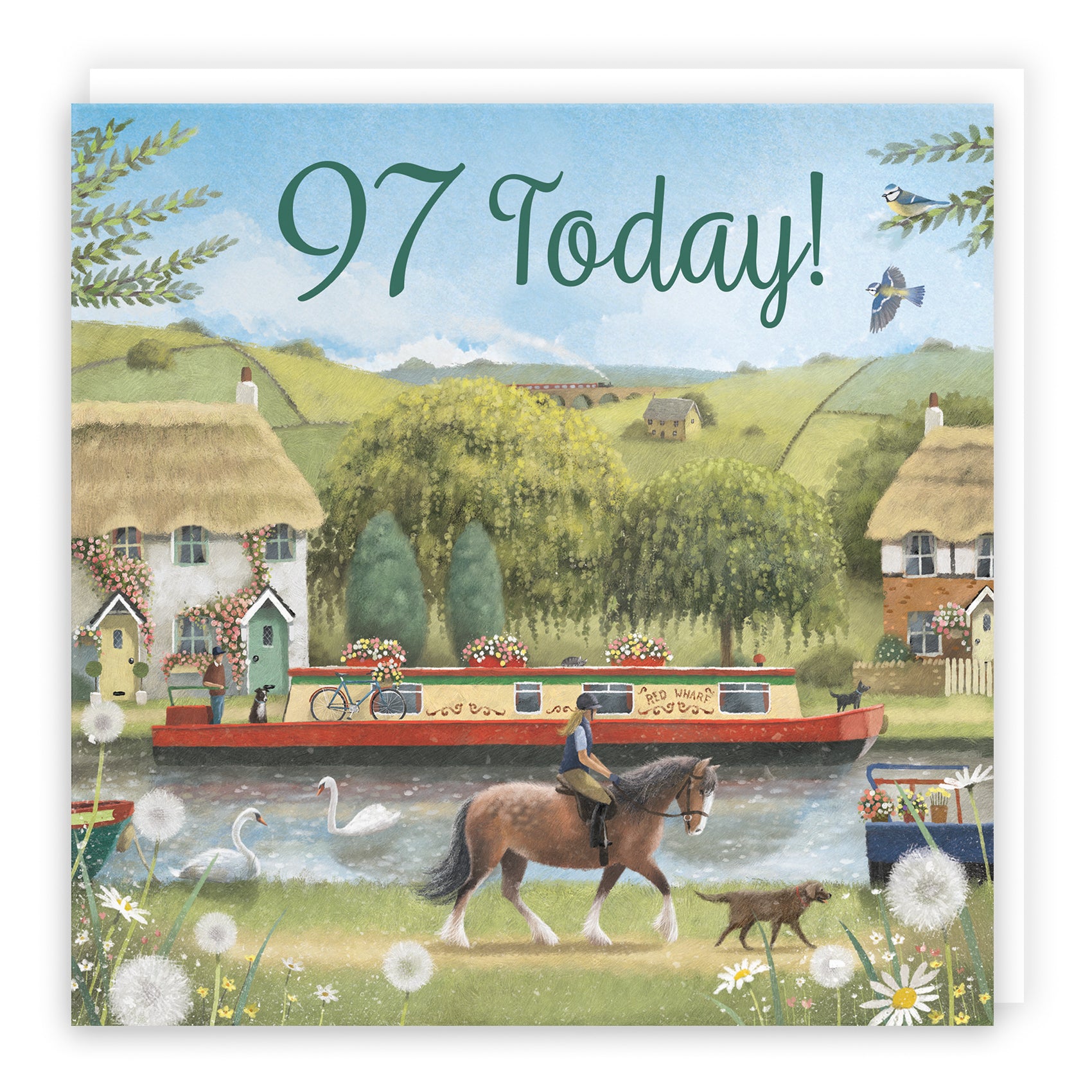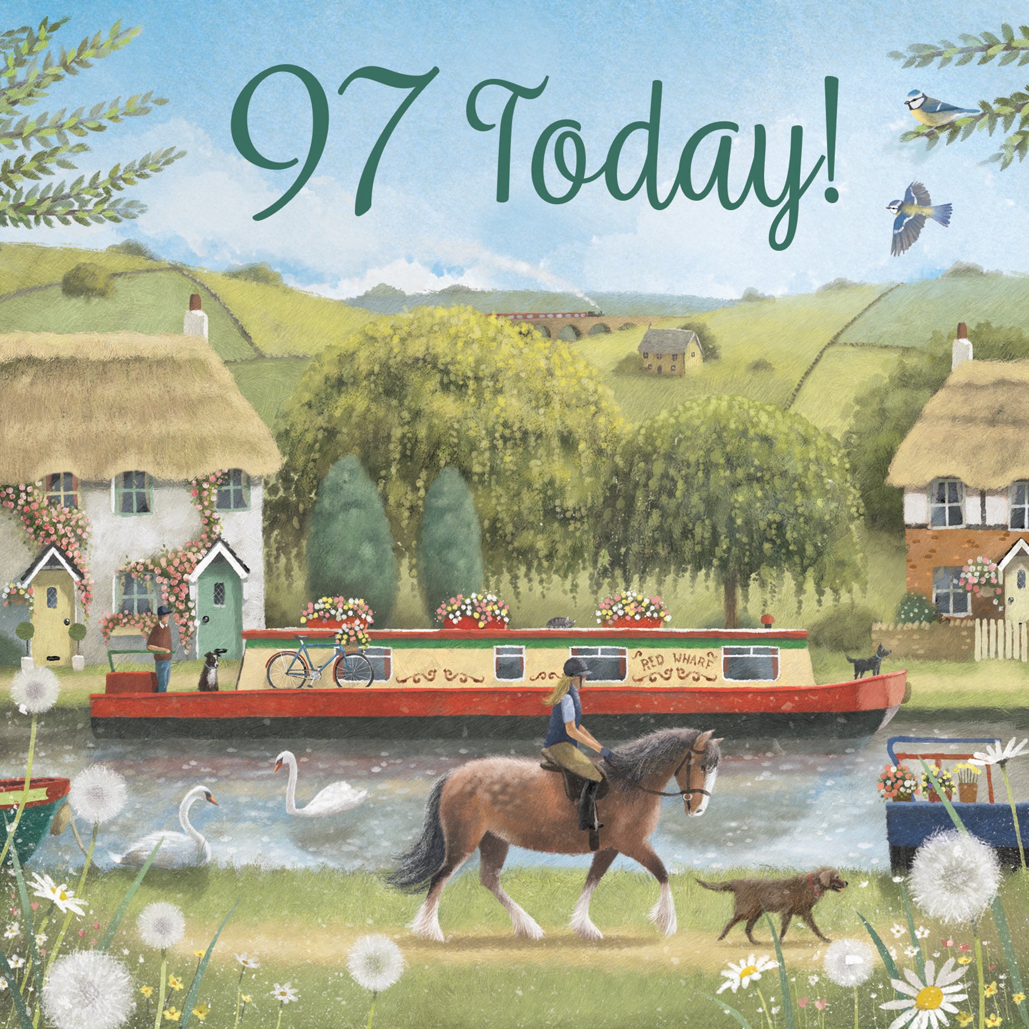 Canal Narrowboat 97th Birthday Card For Him / Her - Horse Riding - Countryside - Milo's Gallery - Age Ninety Seven Birthday Card - 97th Birthday Card - 97 Year Old Birthday Card.
