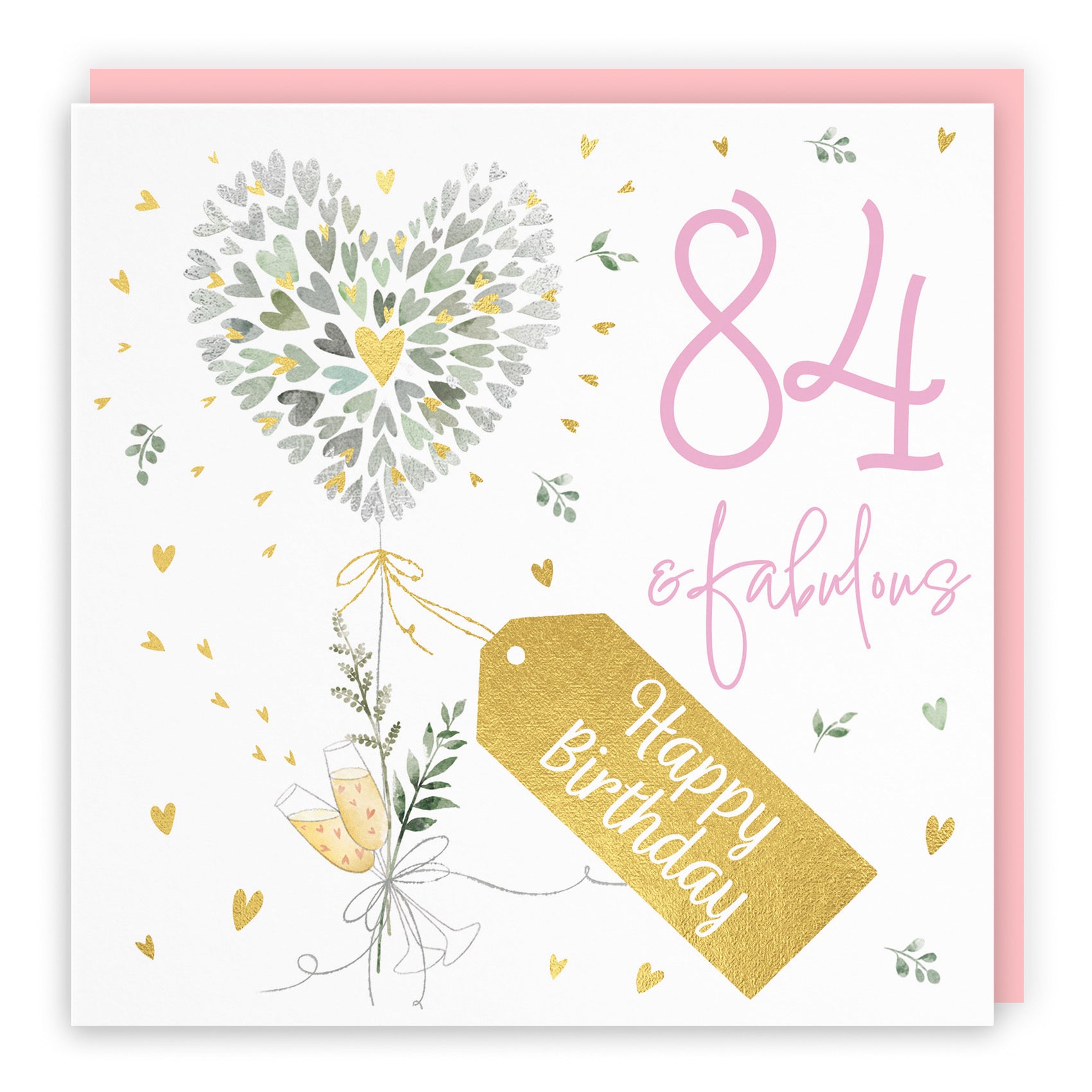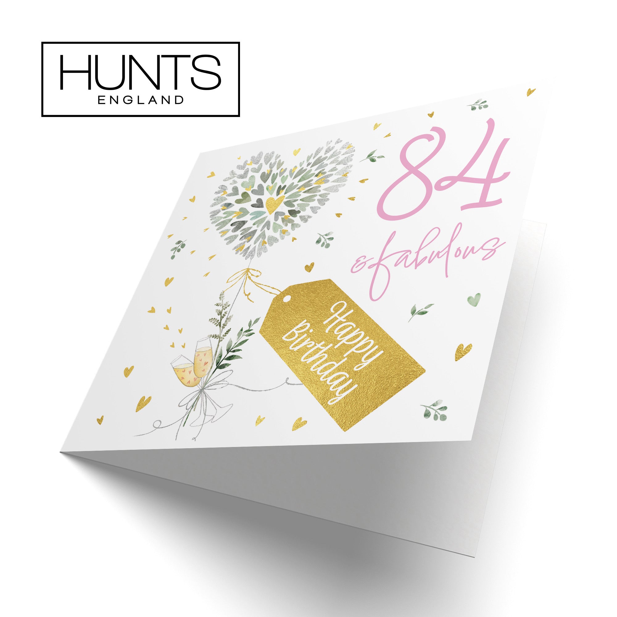 Hunts England - Contemporary Hearts Pretty 84th Birthday Card - Gold Foil - Milo's Gallery - Age 84 Female Fabulous Birthday Card - Birthday Card For 84 Year Old - Age Eighty Four - For Her.