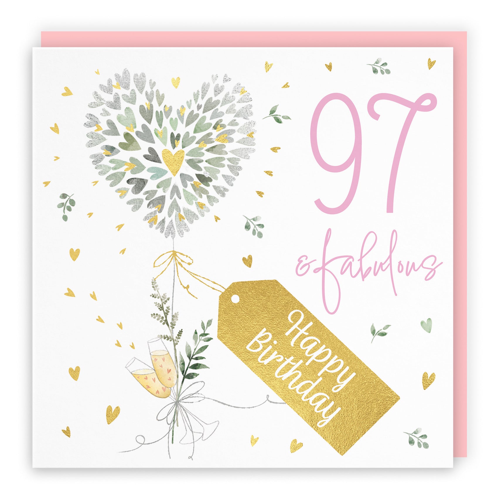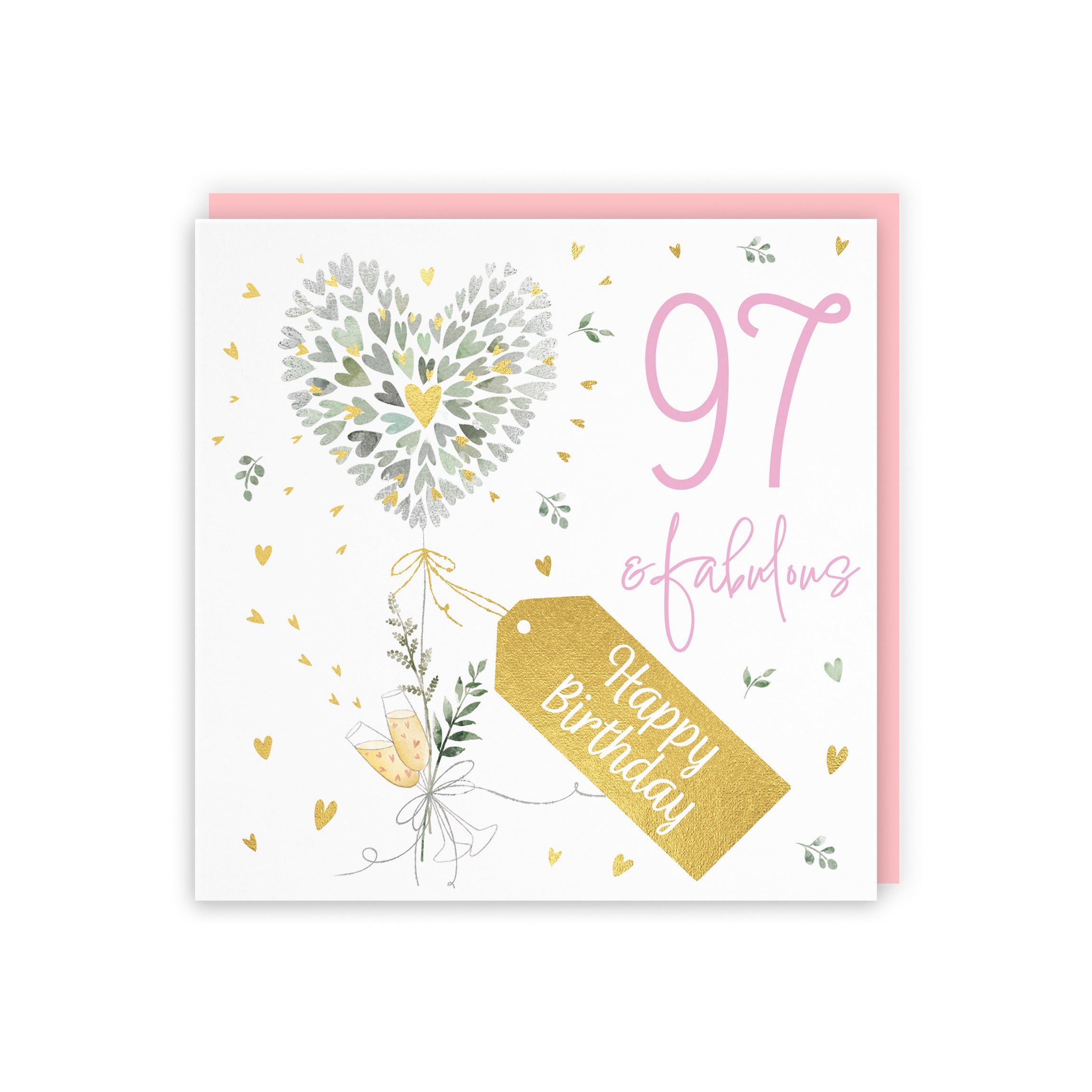 Hunts England - Contemporary Hearts Pretty 97th Birthday Card - Gold Foil - Milo's Gallery - Age 97 Female Fabulous Birthday Card - Birthday Card For 97 Year Old - Age Ninety Seven - Pink Envelope.