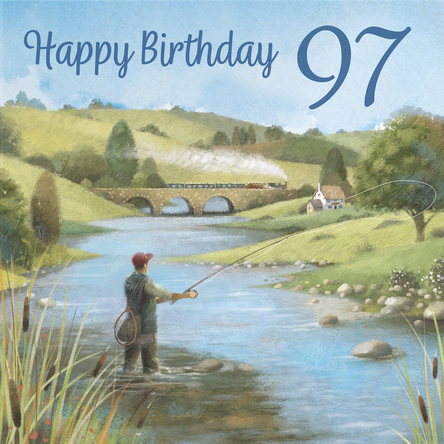 Hunts England - Fly Fishing Fun 97th Birthday Card - Milo's Gallery - Age 97 Sport Birthday Card - Birthday Card For 97 Year Old Fly Fishing Fan - Age Ninety Seven.