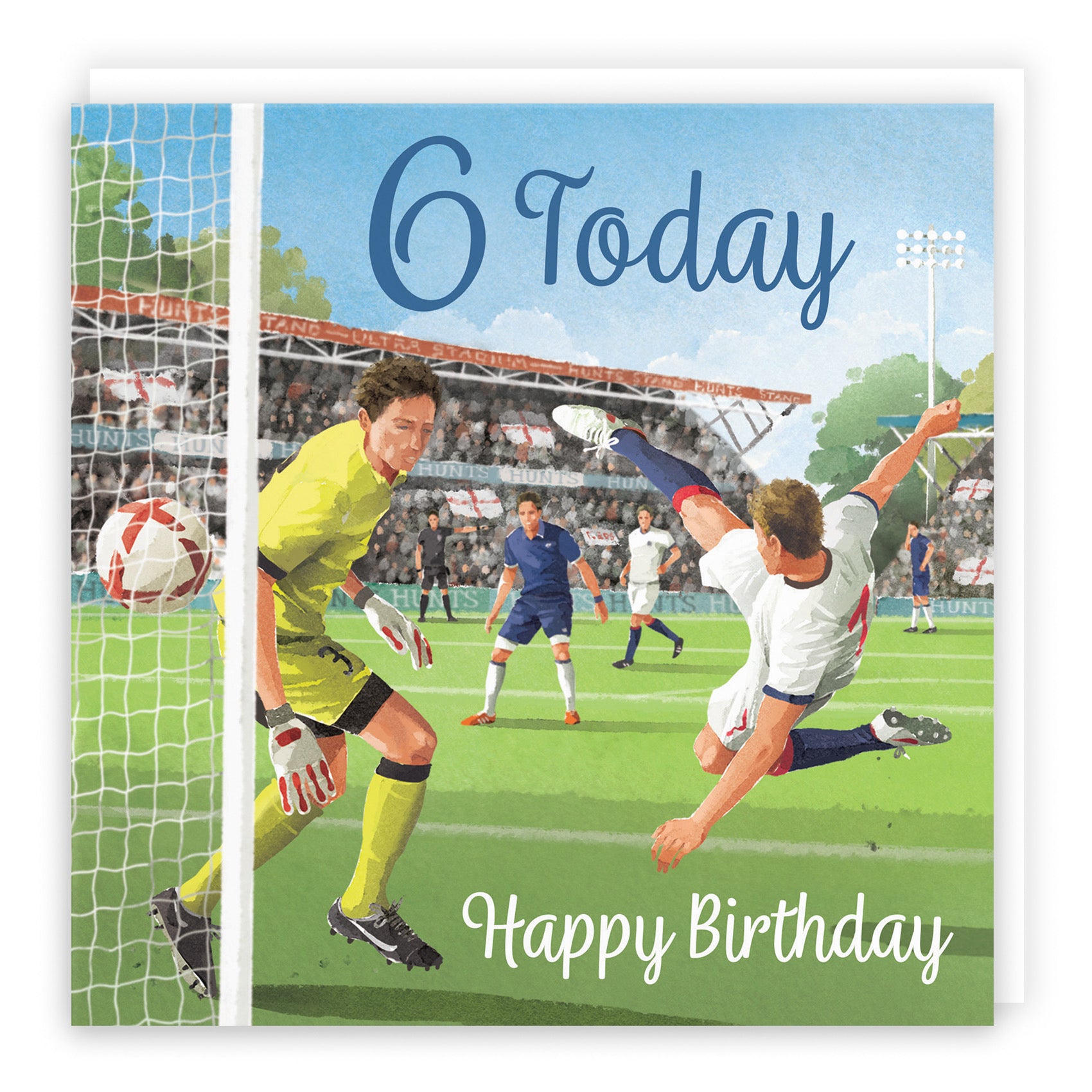 Hunts England - Football Fun 6th Birthday Card - Milo's Gallery - Age 6 Footy Birthday Card - Birthday Card For 6 Year Old Footie Fan - Age Six.