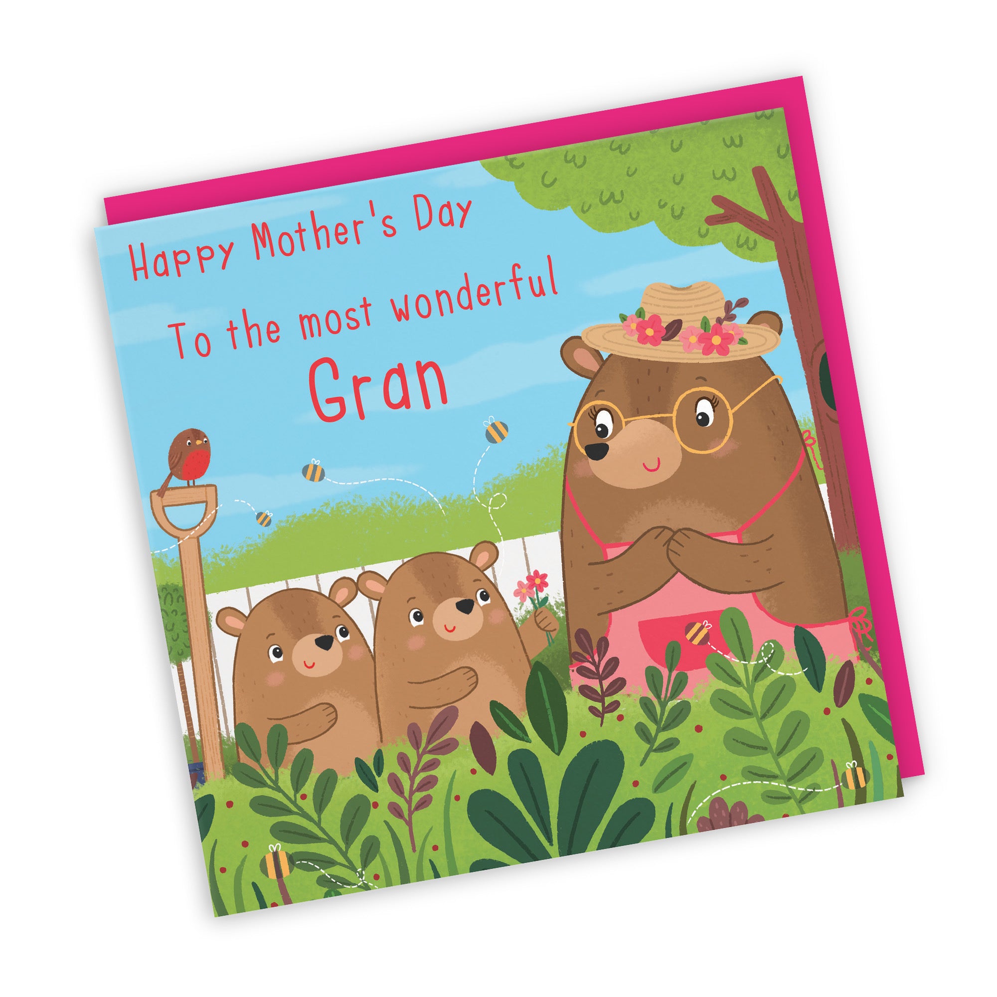 Hunts England - Gran Mother's Day Card From Two Children - Cute Gardening Bears - Happy Mother's Day - To The Most Wonderful Gran - Cute Bears Collection.