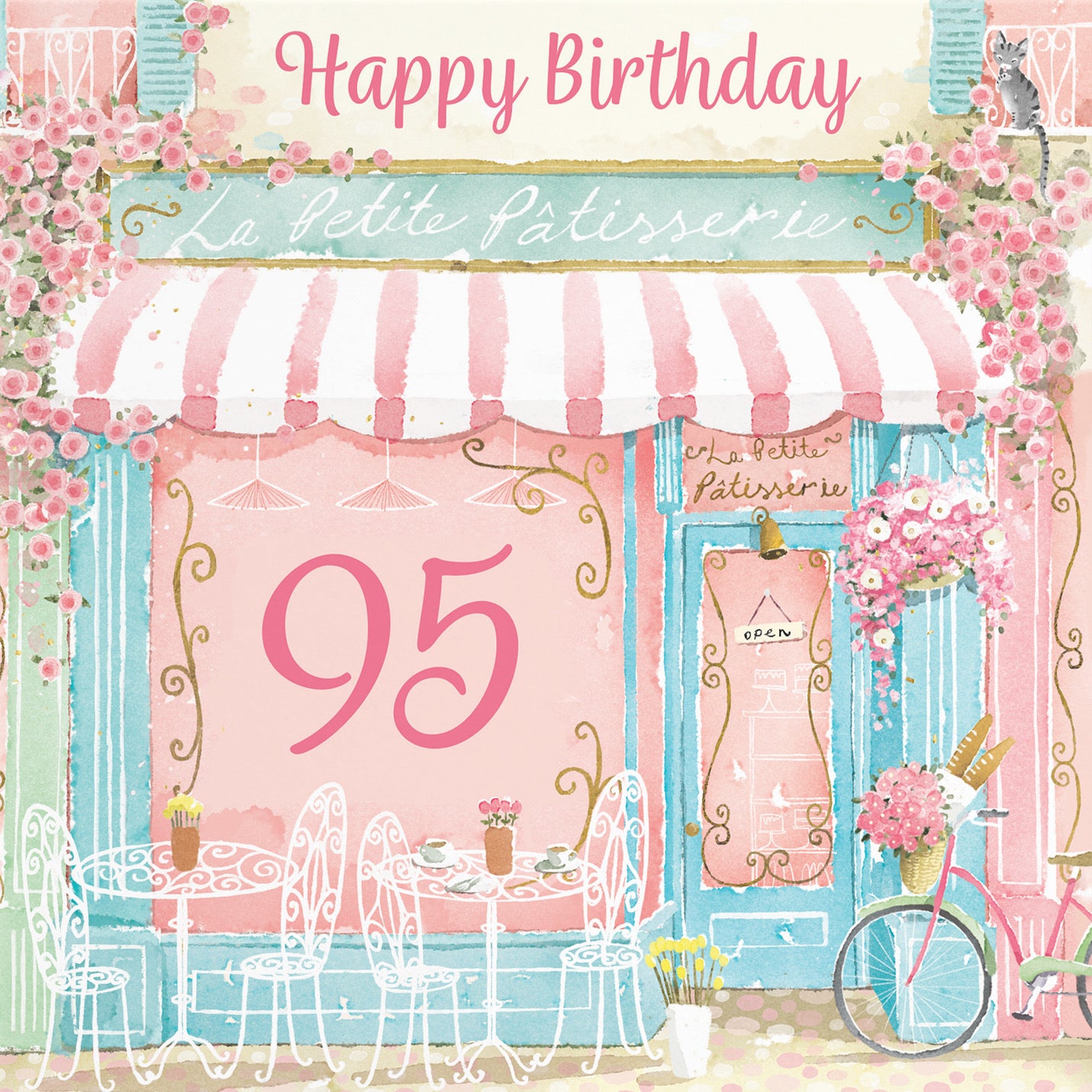 Hunts England - La Petite Patisserie 95th Birthday Card For Her - Charming Pink Bakery, Pretty French Cafe Female Floral Design - Age 95 Happy Birthday Card - Milo's Gallery.