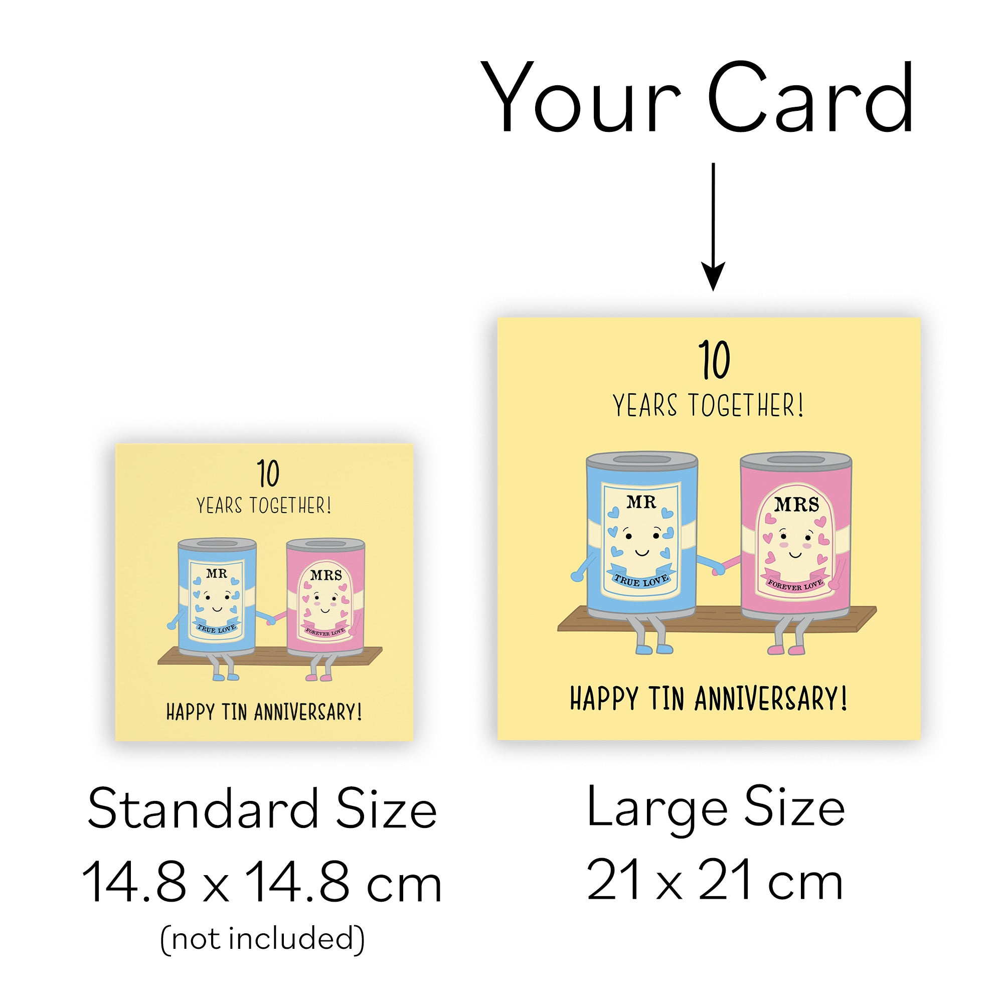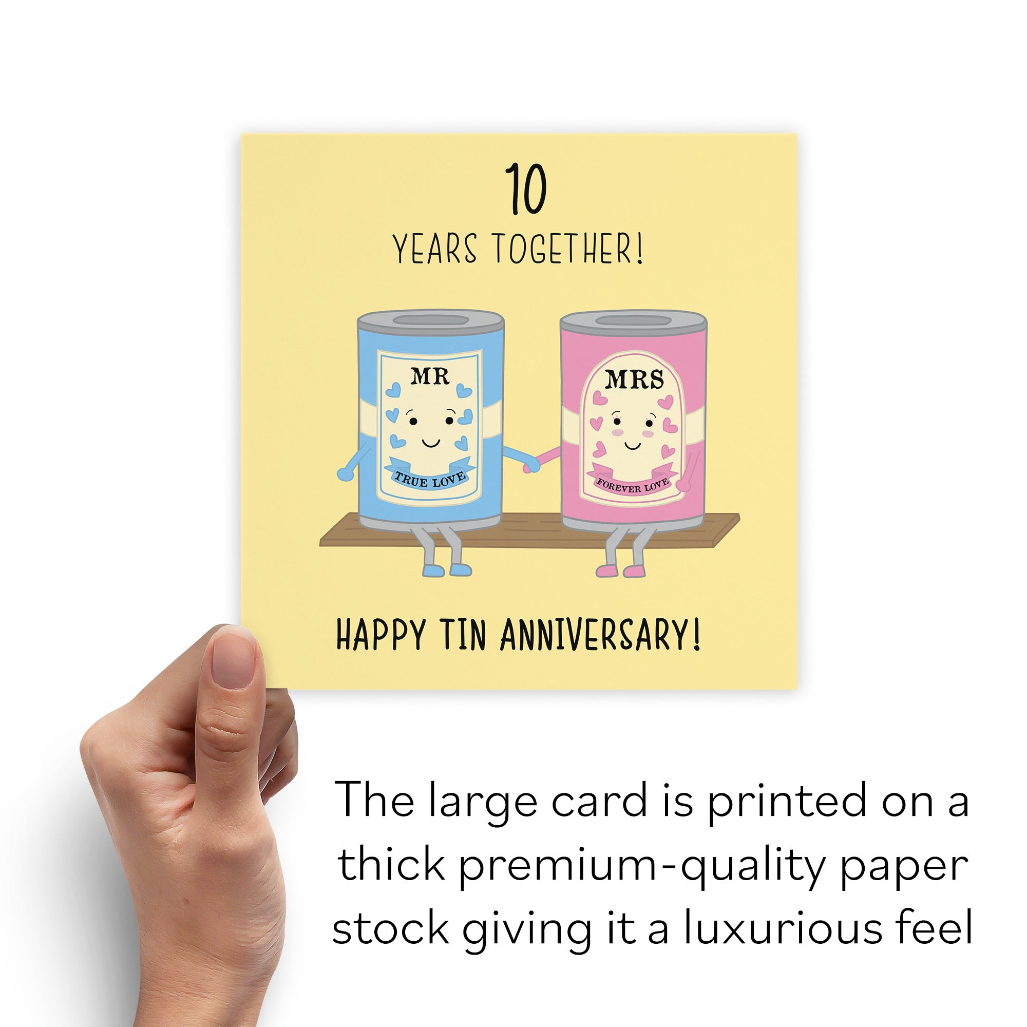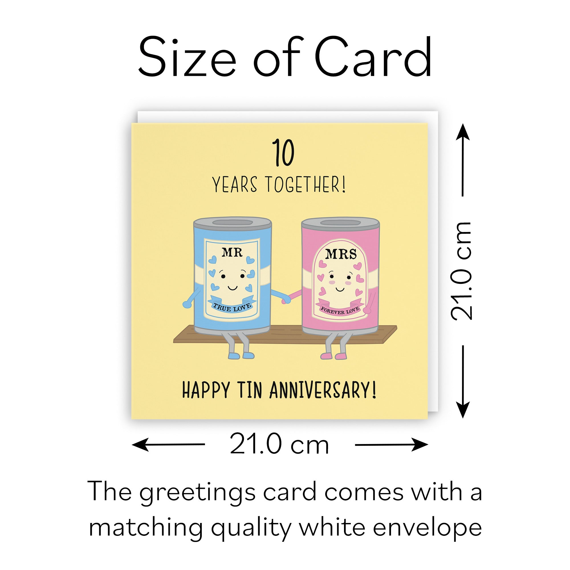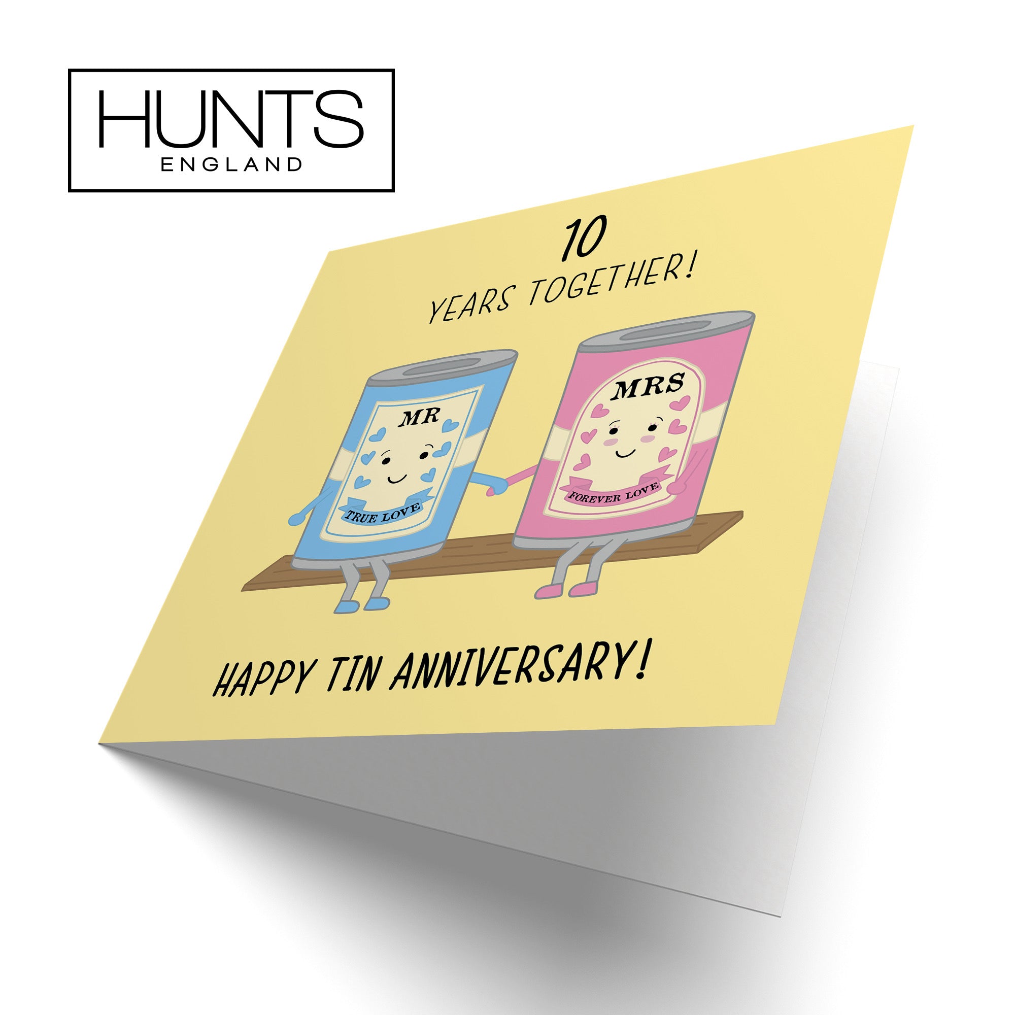 Hunts England - Large 10th Wedding Anniversary Card - Large Size - Tin Anniversary - Iconic - Large - 210 x 210 mm - 10 Years Cute Anniversary Card For Him, Her, Couples, etc..