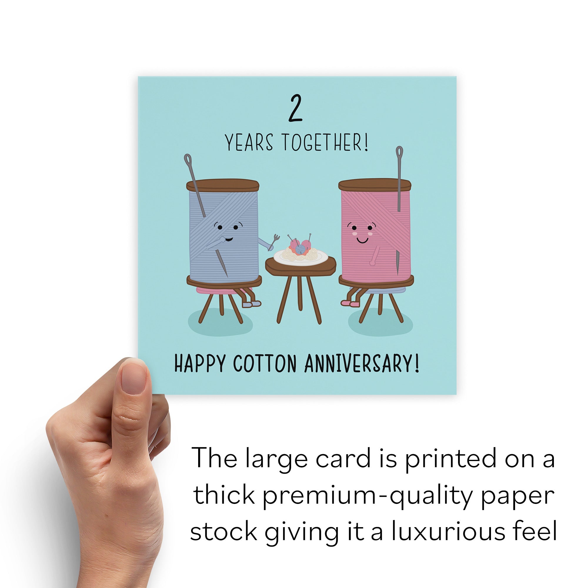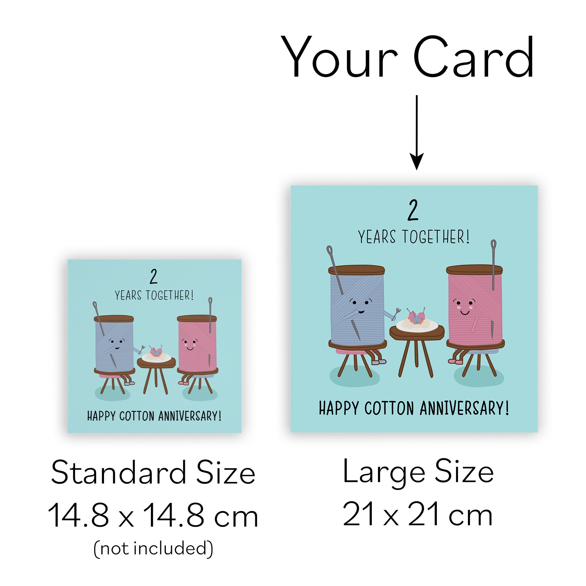 Hunts England - Large 2nd Wedding Anniversary Card - Large Size - Cotton Anniversary - Iconic Collection - Large - 210 x 210 mm - 2 Years Cute Anniversary Card For Him, Her, Couples, etc..