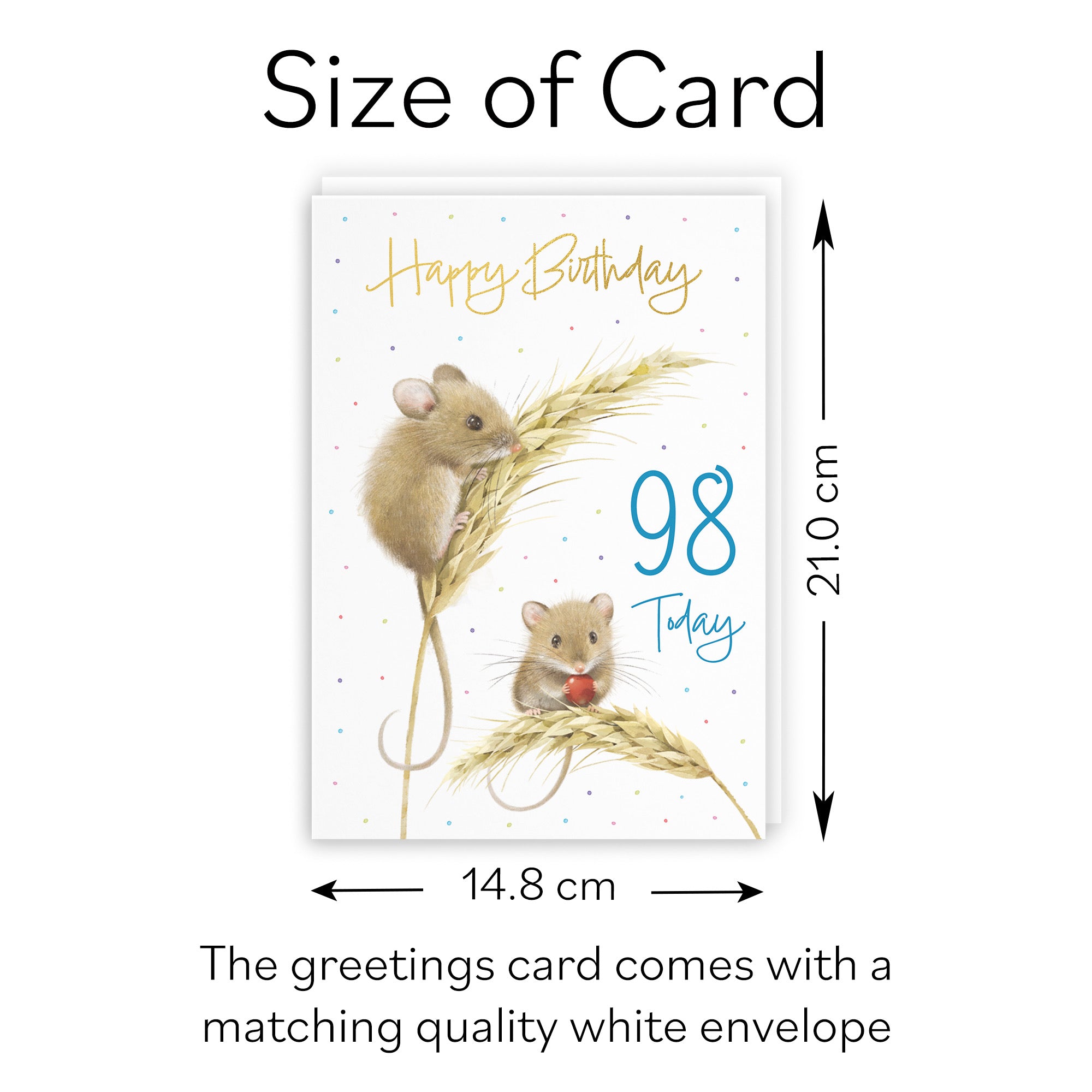Hunts England - Harvest Mice Male 98th Gold Foil Birthday Card For Him - Blue - A5 Size - Mouse On Wheat, Colourful Nature Design - Age 98 Happy Birthday Card - Milo's Gallery.