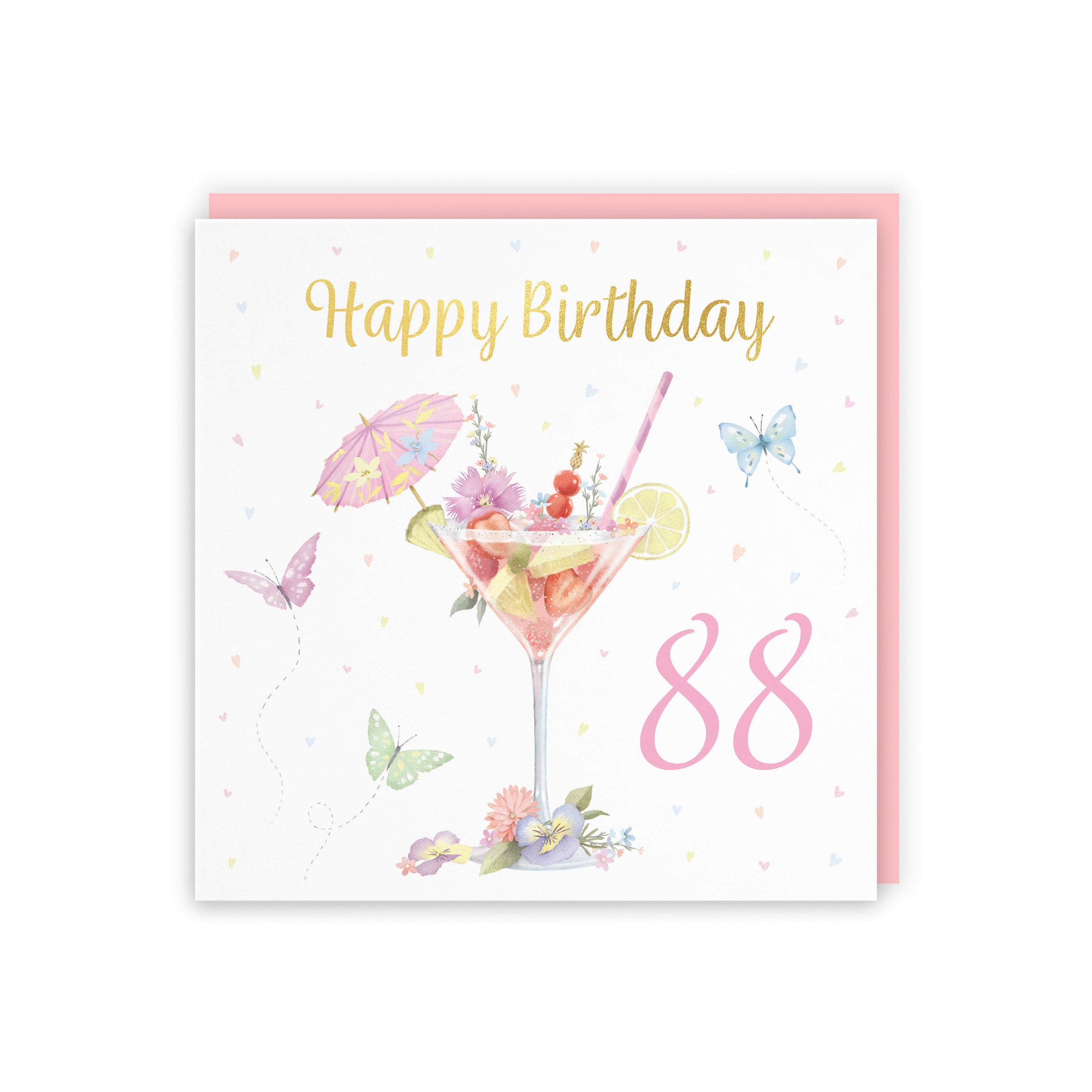 Hunts England - Pink Cocktail And Butterflies 88th Birthday Card - Gold Foil - Milo's Gallery - Age 88 Female Birthday Card - Birthday Card For 88 Year Old - Age Eighty Eight.