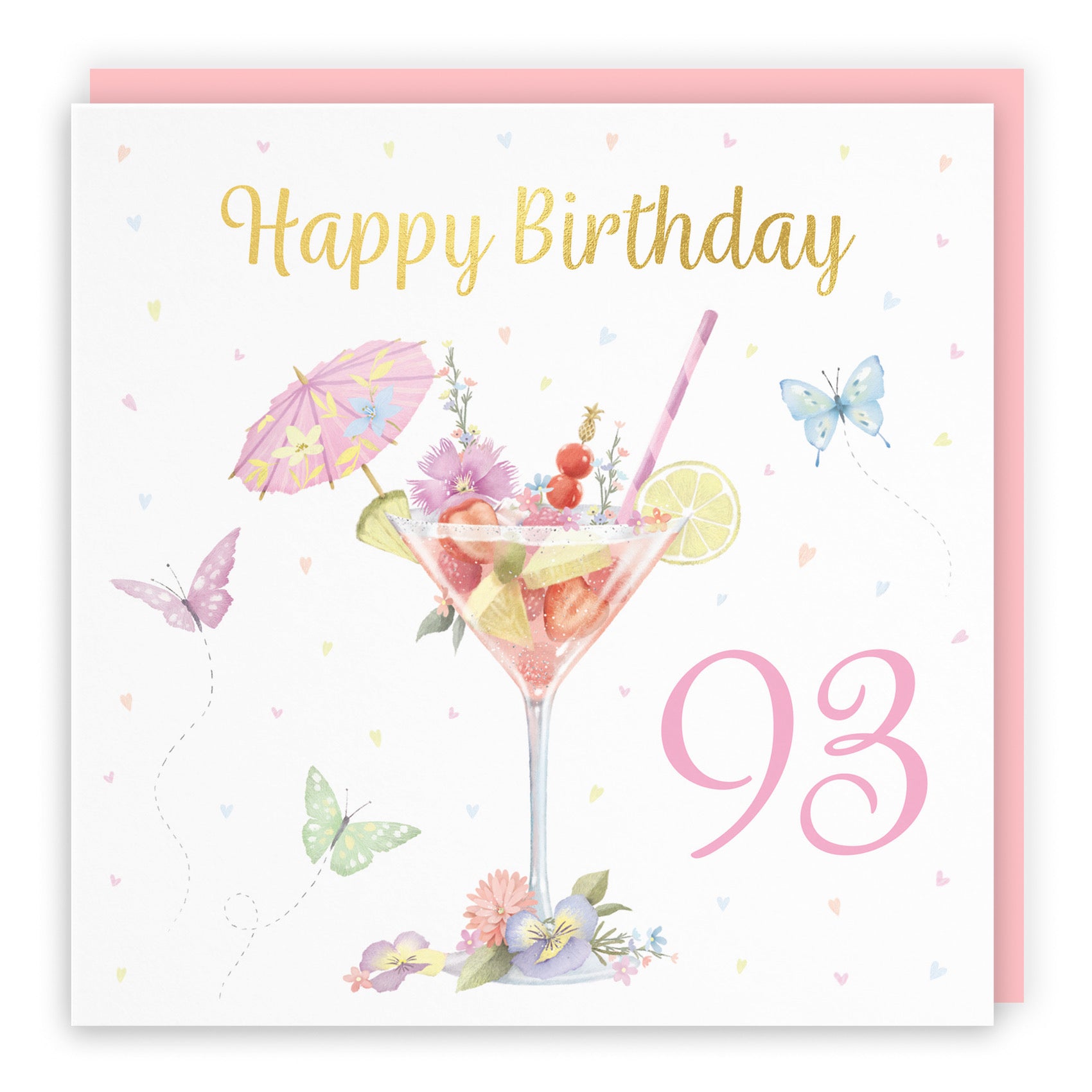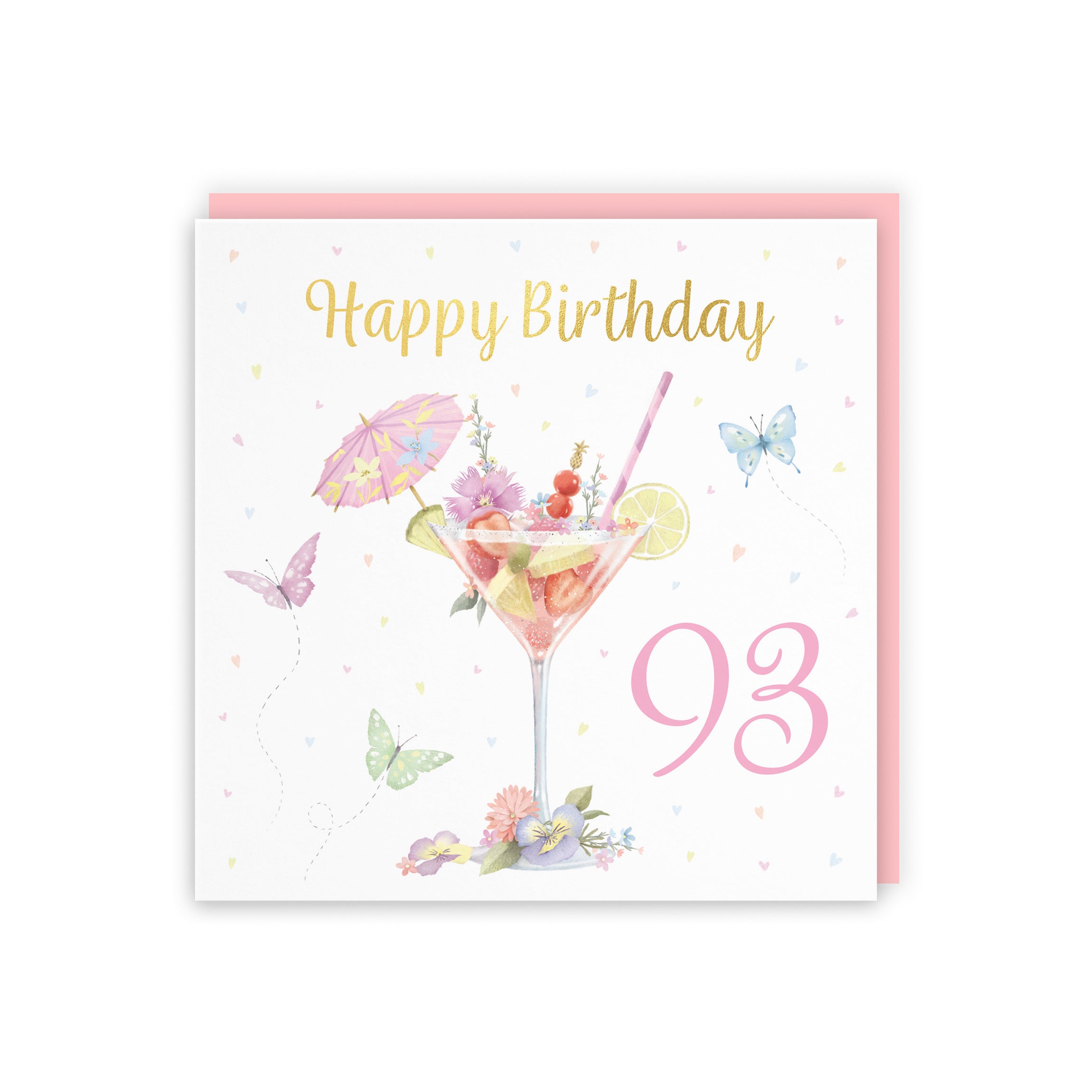 Hunts England - Pink Cocktail And Butterflies 93rd Birthday Card - Gold Foil - Milo's Gallery - Age 93 Female Birthday Card - Birthday Card For 93 Year Old - Age Ninety Three.