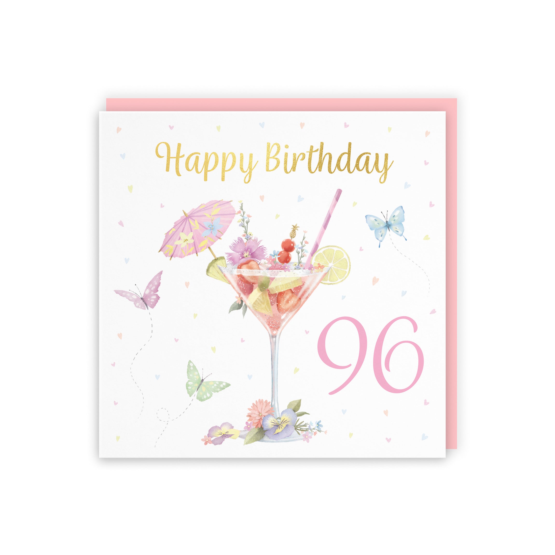 Hunts England - Pink Cocktail And Butterflies 96th Birthday Card - Gold Foil - Milo's Gallery - Age 96 Female Birthday Card - Birthday Card For 96 Year Old - Age Ninety Six.