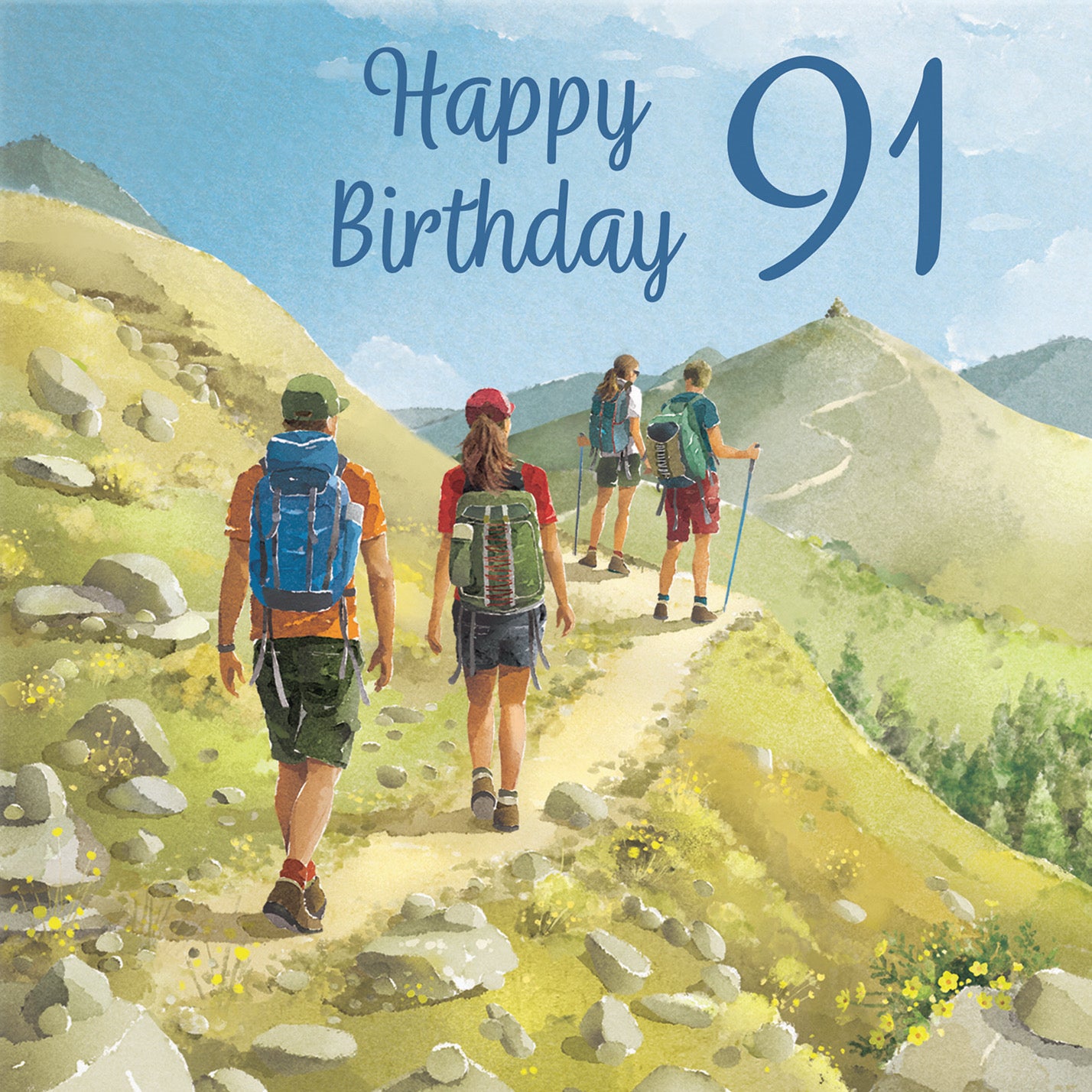 Hunts England - Walking Fun 91st Birthday Card - Milo's Gallery - Age 91 Walkers Birthday Card - Birthday Card For 91 Year Old Hiking Fan - Age Ninety One - For Him, Her.