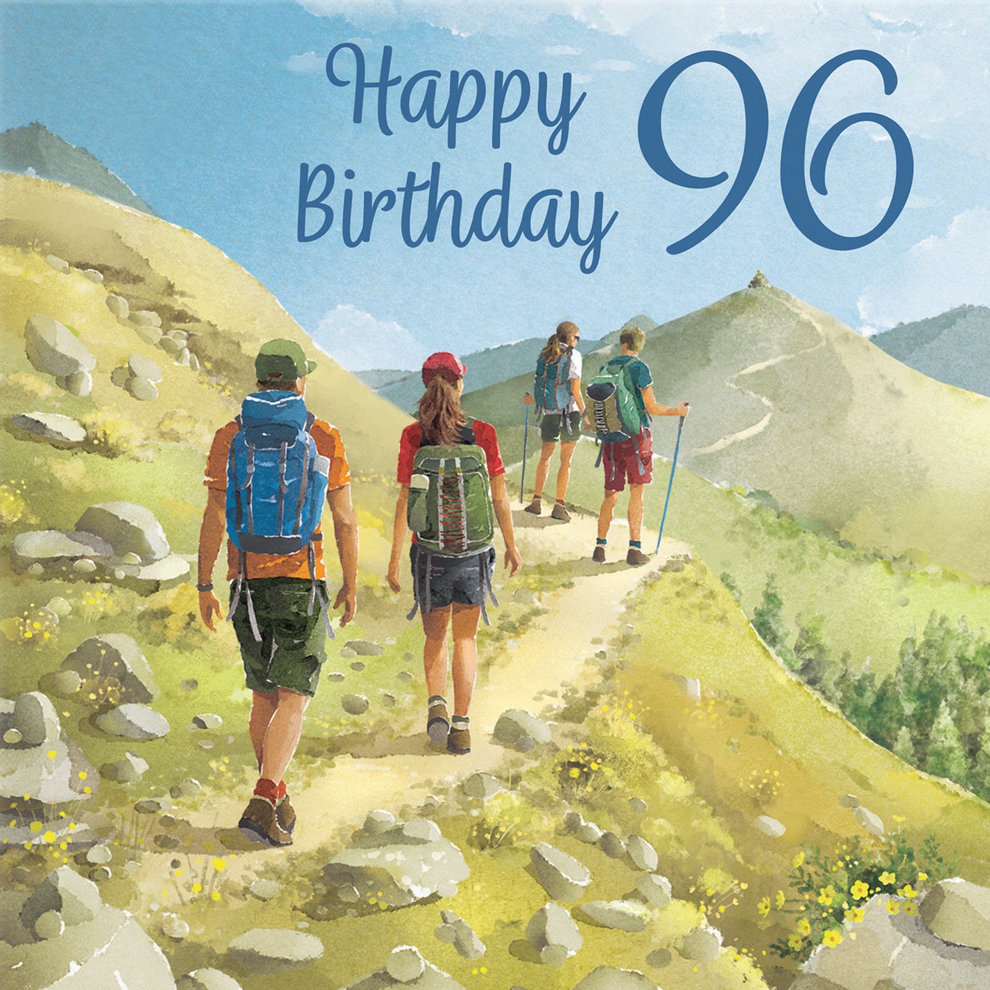 Hunts England - Walking Fun 96th Birthday Card - Milo's Gallery - Age 96 Walkers Birthday Card - Birthday Card For 96 Year Old Hiking Fan - Age Ninety Six - For Him, Her.