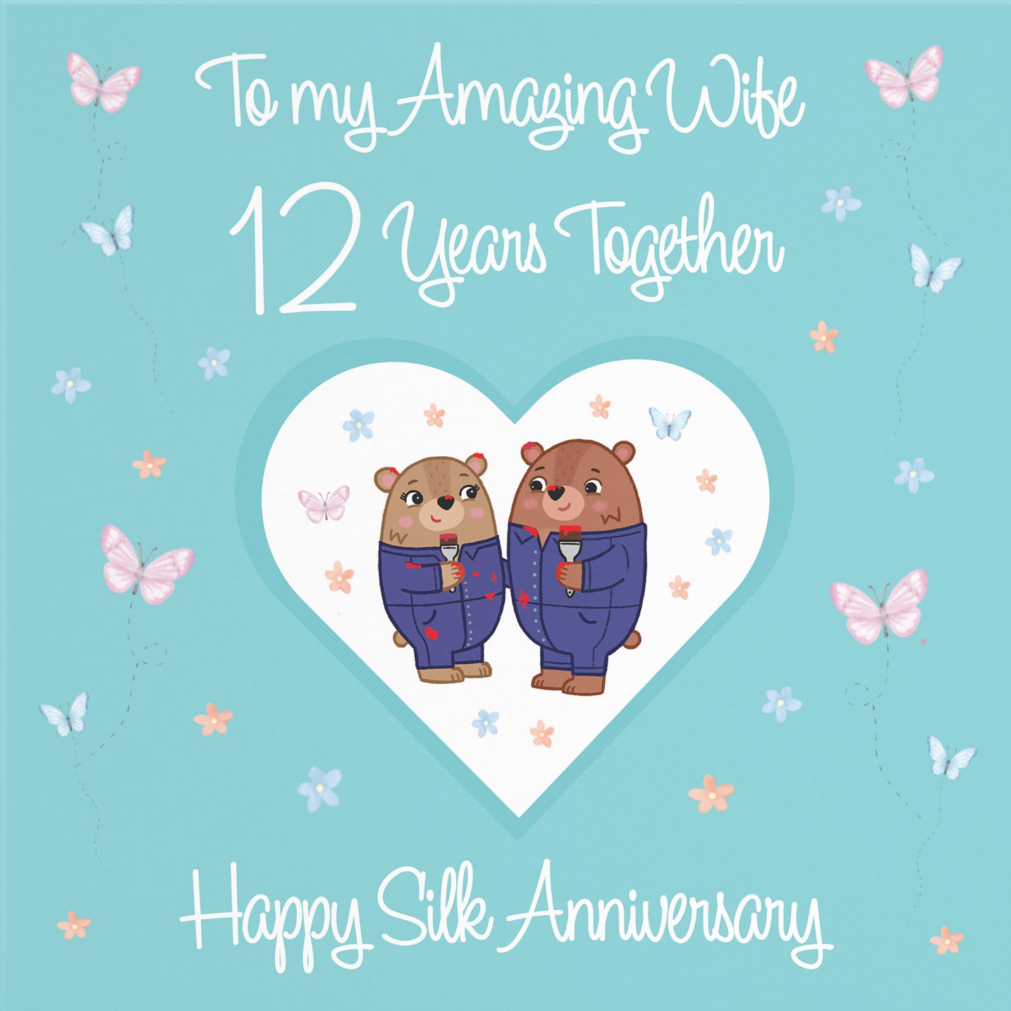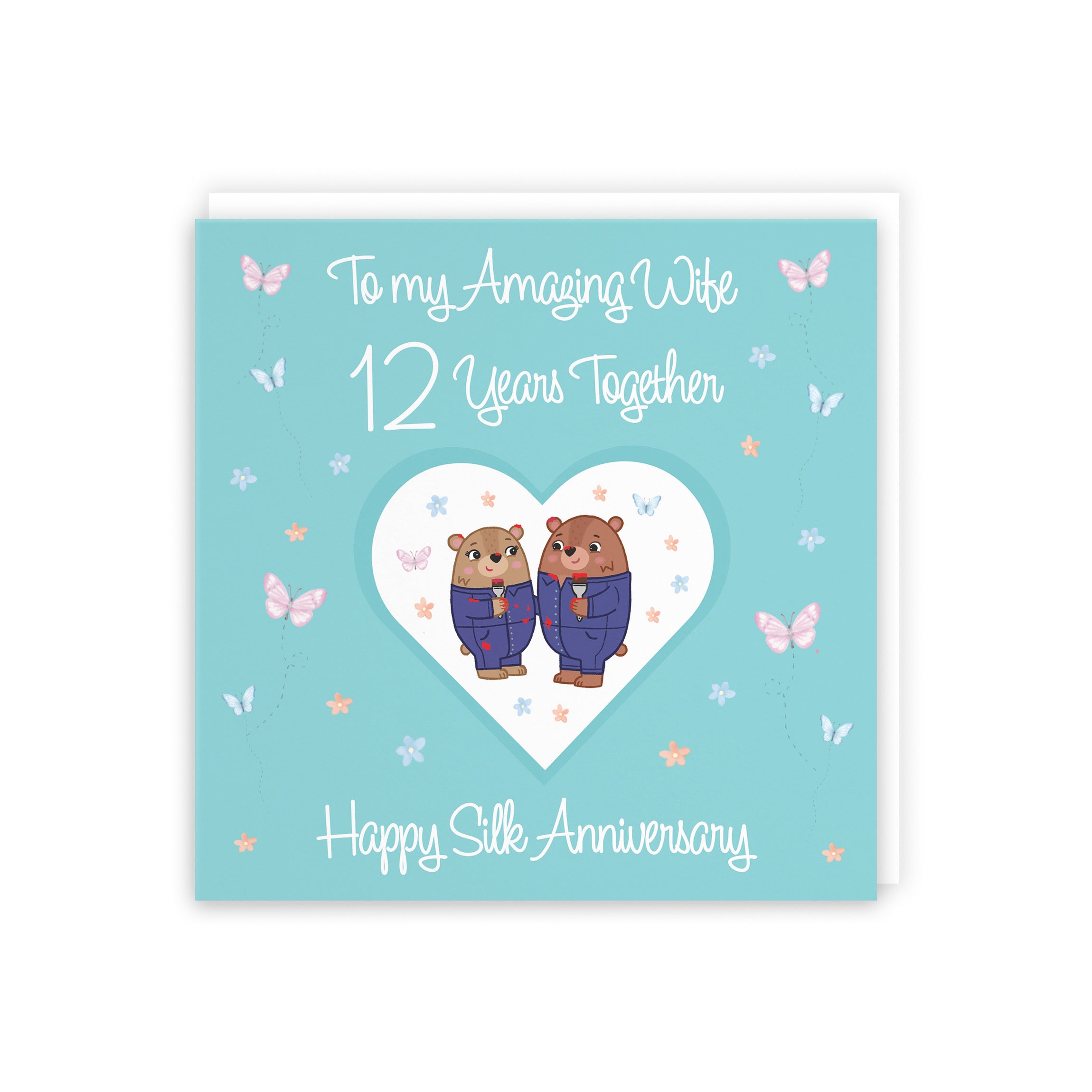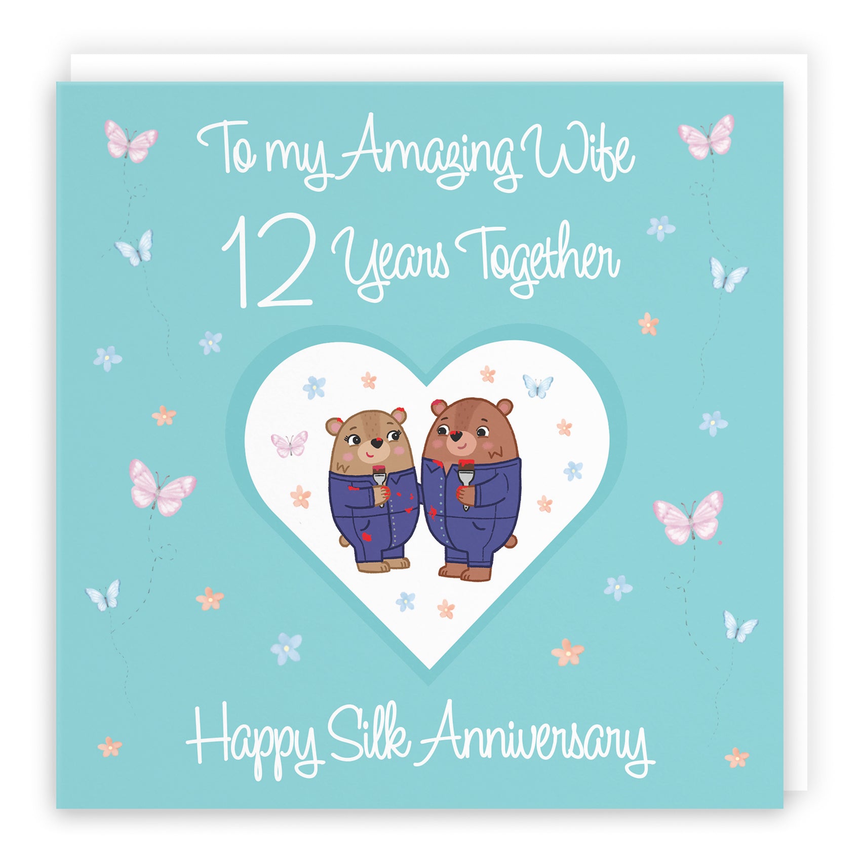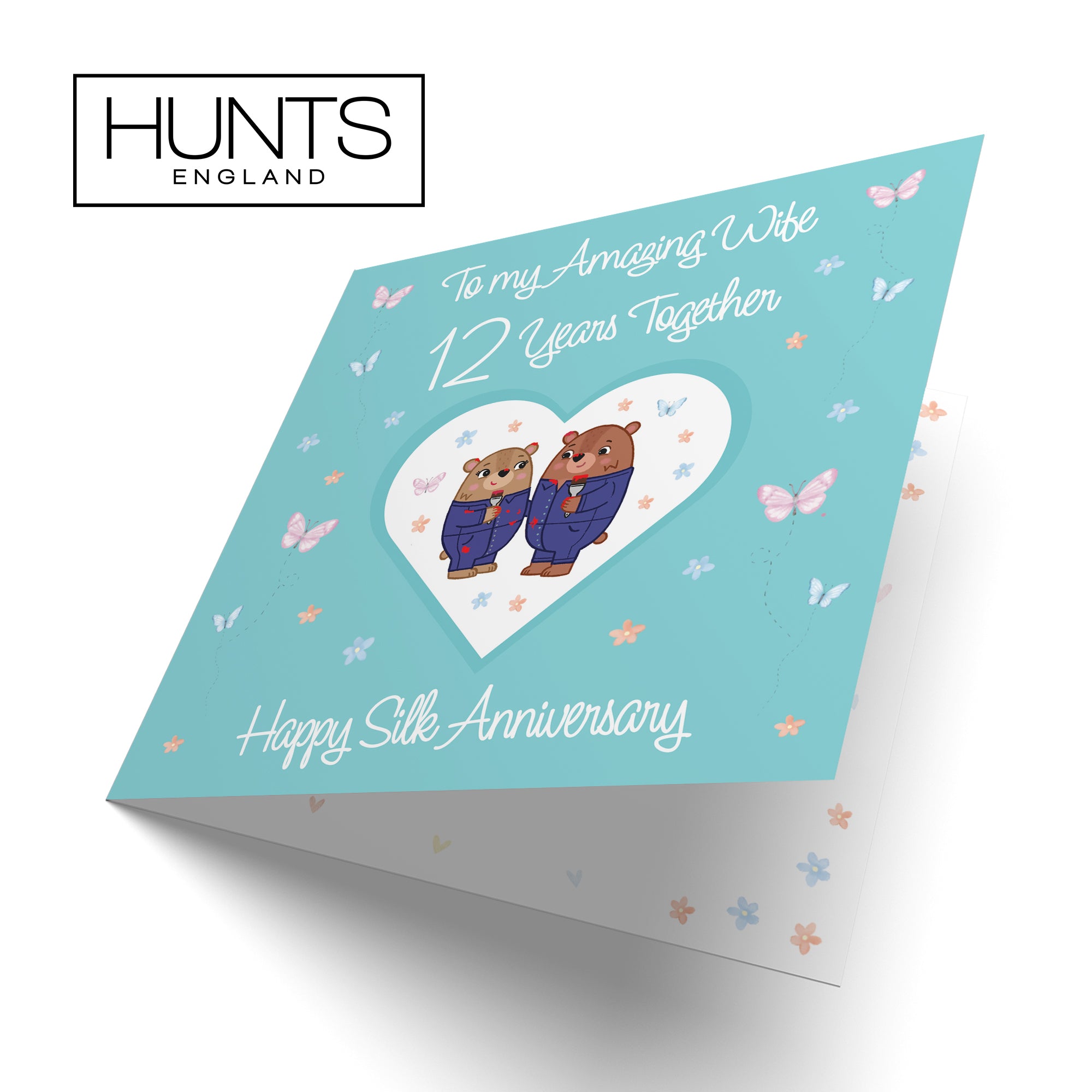 Hunts England - Wife 12th Anniversary Card - 12 Years - Silk Anniversary - Romantic Meadows Collection - Twelfth Anniversary Card For Wife.